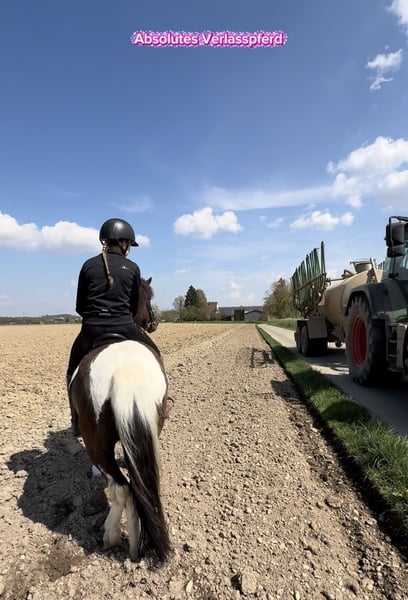 Wunderschöner großer Isländer Wallach, 5 Jahre, großrahmig, viergängig, supercool mit traumhafter Scheckung Manchmal kommt ein Pferd, das einfach alles mitbringt: Charme, Charakter, Talent, Größe und absolute Coolness. Dieser bildhübsche 5 jährige Island Wallach, in Deutschland geboren, begeistert nicht nur mit seiner wunderschönen harmonischen Scheckung sondern vor allem mit seinem einzigartig ausgeglichenen und freundlichen Wesen. Mit aktuell ca. 1,44 m Stockmaß und einem geschätzten Endmaß von etwa 1,48 m ist er ein sehr großer, kräftiger und großrahmiger Isländer, der auch für größere Reiter hervorragend geeignet ist. Er ist ein echtes Traumpferd für Freizeitreiter, ambitionierte Töltliebhaber und alle, die ein nervenstarkes Verlasspferd suchen. Charakter, einfach ein Goldschatz Dieser liebe Wallach ist ein Pferd, das durch seine innere Ruhe und Gelassenheit begeistert. Er ist: • supercool • ausgeglichen • menschenbezogen • freundlich • verspielt mit Artgenossen • bestens sozialisiert • neugierig und lernfreudig Besonders beeindruckend ist seine Einstellung zu allem Neuen: Er liebt es, unbekannte Situationen zu entdecken und bleibt dabei entspannt und souverän. Gerade im Gelassenheitsparcours zeigt er seine absolute Stärke. Hier ist er mit Freude, Neugier und großer Coolness bei der Sache und lässt sich nicht aus der Ruhe bringen. Ausbildung, sicher viergängig mit tollem Tölt Aktuell ist er klar viergängig geritten und überzeugt besonders durch seinen sicheren, angenehm zu sitzenden Tölt. Sein Galopp ist super durchgesprungen und leicht regulierbar. Er lässt sich am komplett durchhängenden Zügel im Galopp entspannt weiterreiten, ohne dabei das Tempo zu steigern. Das macht ihn gerade für Reiter interessant, die ein bequemes, leicht zu regulierendes und nervenstarkes Reitpferd suchen, welches ein gewisses Maß an Sicherheit vermittelt. Er zeigt dabei bereits: • eine gute Balance • viel Übersicht • eine tolle Arbeitseinstellung • entspannte Lauffreude • Talent für mehr Hier wächst definitiv ein Pferd heran, das nicht nur ein fantastisches Freizeitpferd sondern durchaus auch für weitere Förderung sehr interessant ist. Gelände, entspannt und zuverlässig Er war bereits mehrfach mit im Gelände und hat dort ebenfalls absolut überzeugt. Neue Wege, Umweltreize und unterschiedliche Situationen hat er durchweg souverän und easy gemeistert. Er zeigt sich mutig, gelassen, aufmerksam, sicher, unkompliziert. Schon jetzt ist er ein herrliches Ausreitpferd, das seinem Reiter ein tolles Gefühl von Sicherheit vermittelt. Haltung & Alltag Er ist in Deutschland geboren und kennt robuste 365-Tage-Draußenhaltung, was ihn zu einem gesunden, ausgeglichenen und hervorragend sozialisierten Jungpferd gemacht hat. Selbstverständlich ist er, schmiedefromm, verladefromm, ekzemfrei, unkompliziert im täglichen Handling und absolut verträglich in der Herde Fazit Ein außergewöhnlich sympathischer, großrahmiger und wunderschöner Islandwallach, der bereits jetzt durch Rittigkeit, Coolness, Töltqualität und Charakter begeistert. Ein Pferd für Menschen, die nicht einfach irgendeinen Isländer suchen, sondern einen echten Partner fürs Leben mit Talent, Verlassqualität und ganz viel Herz. Ein Traumpferd in jeder Hinsicht. Für einen Termin mit Vorreiten und Probereiten berechnen wir 40€, die beim Kauf des Pferdes selbstverständlich erstattet werden. Hierfür bitten wir Sie um Verständnis. Bei Interesse und Rückfragen melden Sie sich gerne telefonisch oder per WhatsApp unter 049(0)1709343872