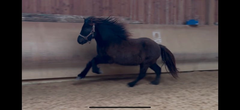 Apollo von Möllenbronn ist ein sehr freundlicher und sympathischer 5jähriger etwas kleiner Viergangwallach. Apollo ist angeritten, zeigte sich dabei sehr motiviert und lernt schnell. Er war bisher beim Anreiten immer wirklich brav und kennt schon Sattel, Trense, Reiter und wird aktuell in den Grundgangarten in der Halle und auf dem Reitplatz geritten. Er hat sehr viel Tempovarianz im Trab mit weiten Bewegungen. Tölt zeigt er immer wieder im Übergang. Er steht aktuell in einer gemischten Herde und ist dort und auch im Umgang sehr unkompliziert. Apollo ist regelmäßig geimpft und entwurmt und gesund. Sein Vater ist Glæsir von der Igelsburg (FIZO: 8,11) und seine Mutter ist eine Vidalin frá Hamraholi (FIZO: 8,4) Tochter.