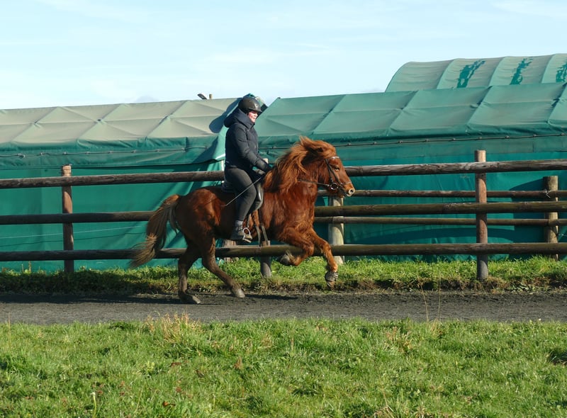 Rode Diamant Neisti is een veelbelovende jonge IJslandse ruin, die door zijn leeftijdsgeschikte, professionele opleiding al indrukwekkend laat zien wat hij in huis heeft. Als elegante draf- en galoppeerder overtuigt hij met lichtvoetige, taktvaste bewegingen en een bijzonder mooi gesprongen, uitgebalanceerde galop – zelfs op kleine cirkels is hij zeker en moeiteloos te rijden. Hij is bekend met grondwerk, longeerwerk en rijden binnen en buiten. Neisti kent al diverse situaties en werkt geconcentreerd en betrouwbaar mee. Hij is gevoelig aan de hulpen en biedt zijn ruiter daardoor een fijn, harmonieus rijgevoel. Dankzij zijn goede rijbaarheid en natuurlijke bereidheid tot presteren, is hij geschikt als talentvol wedstrijdpaard, maar ook als een gemakkelijk te rijden, gemotiveerde partner voor de recreatie. Hij is braaf in de omgang, goed gesocialiseerd binnen onze ruinengroep en ontspannen bij de smid. Een jonge ruin met toekomst – attent, elegant en klaar voor nieuwe uitdagingen. Neisti wacht op een mens die zijn potentieel verder wil ontwikkelen en samen met hem wil groeien. Momenteel is hij, vanwege zijn leeftijd, geschikt voor een veilige, losse jongere ruiter of een ambitieuze volwassene – geen beginnerspaard, maar ook niet bijzonder veeleisend.