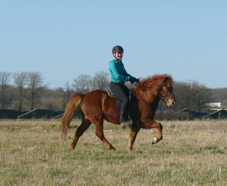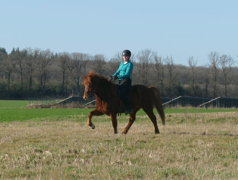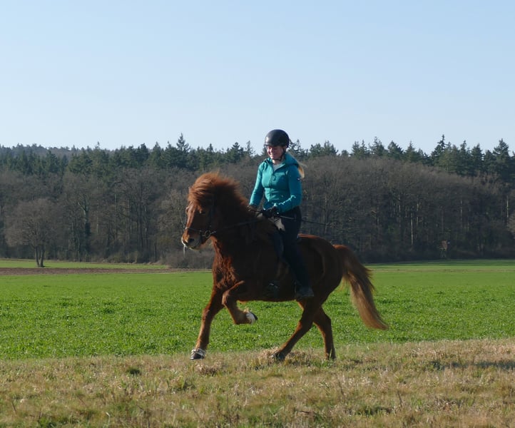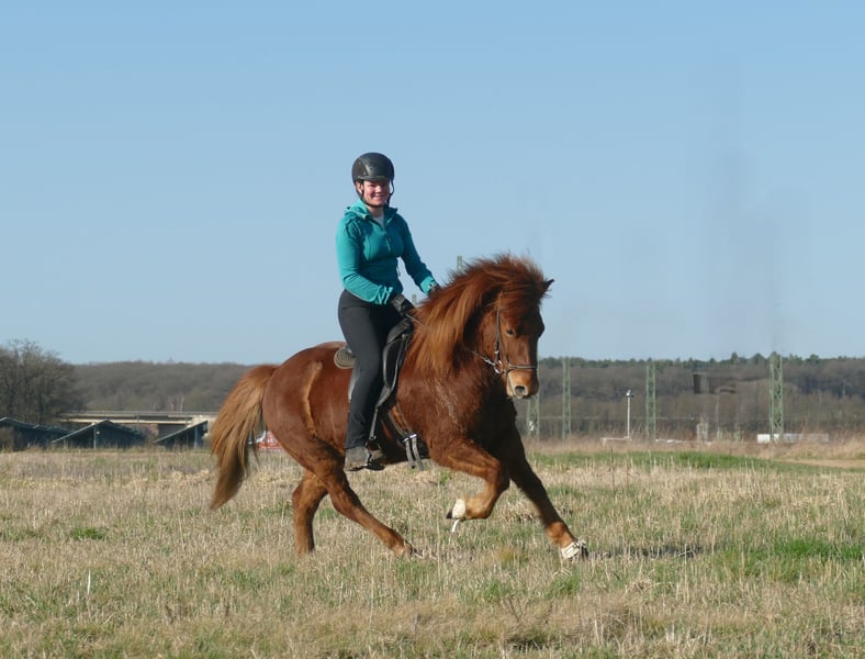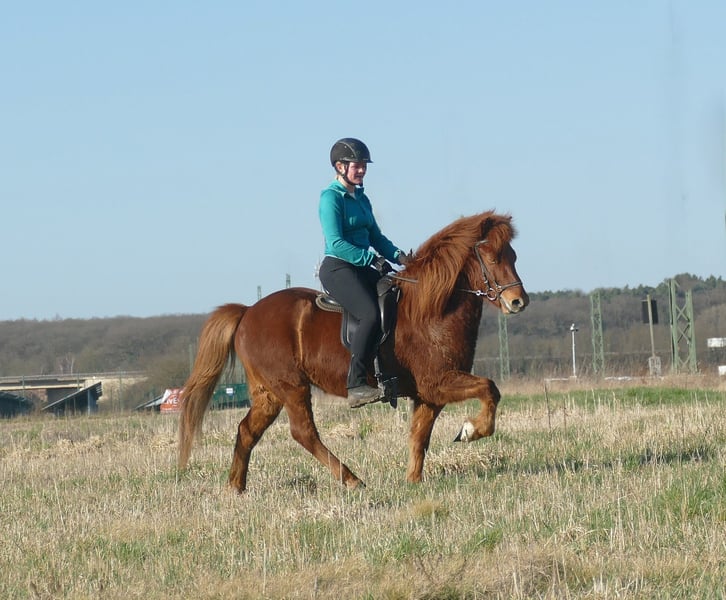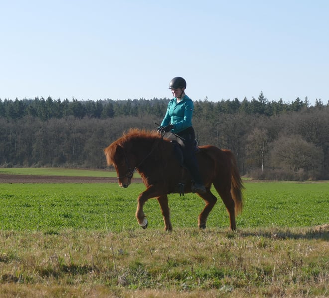 Roter Diamant Neisti ist ein gut ausgebildeter Wallach, den man in allen Bereichen der Reiterei einsetzen kann. Als eleganter Viergänger überzeugt er mit leichtfüßigen, taktklaren Bewegungen und einem besonders schön gesprungenen, ausbalancierten Galopp – selbst auf kleinen Kreisen sicher und mühelos abrufbar. Sein Tölt hat sehr viel Fluss, viel natürliche Bewegung und ist leicht zu reiten. Sein Trab ist ganz sicher, geregelt und immer in Haltung. Er kennt Bodenarbeit, Longieren sowie Reiten drinnen und draußen. Er gibt dem Reiter immer ein solides Sicherheitsgefühl und wurde auch schon öfter mal von Jugendlichen geritten, die viel Spaß mit ihm haben. Er kennt bereits eine Vielzahl an Situationen und arbeitet konzentriert sowie zuverlässig mit. Neisti ist gut an den Hilfen und bietet seinem Reiter dadurch ein feines, harmonisches Reitgefühl. Dressur, Gang, kurze und lange Geländeritte, Reitabzeichen, Trainerscheine, Turniere- dieses Pferd bietet ALLES an! Neisti ist brav im Umgang, gut sozialisiert in unserer Wallachherde und entspannt beim Schmied. Ein toller Wallach mit Zukunft – aufmerksam, elegant und bereit für neue Aufgaben.