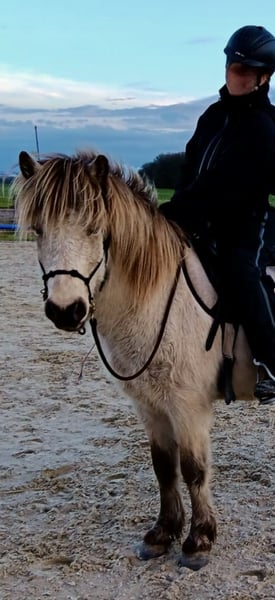 Vanwege tijdsgebrek verkoop ik mijn zesjarige, aangelegde IJslander ruin. Hij is een prachtige, aardkleurige ruin met een mooie donkere manen en een stokmaat van 1,35 m. Afhankelijk van het seizoen verandert hij van kleur. Hij is een karaktersterke IJslander en heeft nog liefdevolle consequentie nodig. Ideaal voor iemand die samen met zijn pony verder wil groeien en ontwikkelen. Bijzondere eigenschappen: • Rijdt bitloos met een knoophalster • Aangedreven in de bak en buitenritten • Zeer fijn en attent in de omgang • Driegangers (stap, draf, galop) Hij is de ideale vrijetijdspartner, ook voor buitenritten, en heeft tot nu toe alleen maar goede ervaringen. Hij heeft een gemiddeld temperament, een snelle stap en is gewend aan auto's, tractoren en dergelijke. Hij is moedig; als hij eens schrikt, kalmeert hij meteen weer en neigt niet tot paniek of doorlopen. Hij is eczeemvrij, goed te laden en heeft zeer goede hoeven. Ziekten zijn niet bekend. Tot nu toe stond hij altijd in een groepsstal met andere ruineren. Het is geen noodverkoop en wordt uitsluitend verkocht aan een 5-sterren thuis. Bij verdere opleiding wordt de vaste prijs verhoogd.