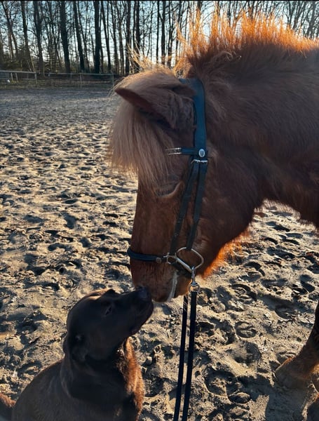 Fagur ist ein 7-jähriger, 140 cm großer Isländerwallach. Er ist auf dem Barghof in einer großen Herde aufgewachsen und stand seitdem stets in einer Wallachherde. Dort zeigt er sich sehr verträglich und in reiner Isländergesellschaft absolut unkompliziert. In einer gemischten Herde mit Großpferden übernimmt er gerne die Chefrolle, dieser Aufgabe ist er allerdings nicht immer gewachsen. Es tut ihm gut, wenn ein anderes Pferd diese Position übernimmt. Fagur ist viergängig geritten. Sein Tölt ist stets taktklar mit schöner Bewegung, egal ob im Gelände, auf dem Platz oder auf der Ovalbahn. Anhängerfahren meistert er problemlos. Er ist ein toller Kumpel für gemeinsame Abenteuer und bringt sicher auch Potenzial für den Turniersport mit. Er verfügt über ein mittleres Temperament, ist stets freundlich und der Arbeit gegenüber sehr positiv eingestellt. Ich kann ihn mir gut für Jugendliche oder ambitionierte Erwachsene vorstellen. Da Fagur sehr klug ist, braucht er einen sicheren und konsequenten Reiter, der ihm klar zeigt, wo es langgeht. In der Vergangenheit hat er bei unsicheren Reitern versucht, seine Grenzen auszutesten. Bei Reitern, die sich davon nicht verunsichern lassen, ist das jedoch überhaupt kein Problem. Für ängstliche oder ungeübte Reiter ist Fagur daher nicht geeignet. Da es uns sehr am Herzen liegt, den passenden Menschen für ihn zu finden, ist der Preis Verhandlungssache. -sowohl beschlagen als auch barhuf möglich, da er eine sehr gute Hornqualität hat. Derzeit läuft er mit vier Eisen, ist aber das letzte Jahr problemlos ohne Eisen gelaufen.