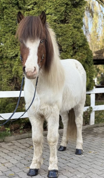Snær frá Bakkakoti Gelding, 1.38 m Born in 2018 in Iceland Five-gaited, trained in four gaits Color: Brown and white pinto with two blue eyes AKU including X-rays available, teeth recently checked VAT deductible Sire: Vésteinn frá Bakkakoti 8.29 (Ext 8.17, Re 8.35) Dam: Ómur frá Kvistum 8.61 (Ext 8.24, Re 8.85) Dam's Sire: Silja frá Sydra-Skördugili Granddam: Hjálmar frá Vatnsleysu The beautiful Snær is looking for a loving new home. With his long, dense mane, gentle nature, and smooth gait, he is a horse that is truly unique. Snær is an exceptionally well-behaved, reliable, and completely fearless gelding. He is more driven than spunky, always calm, and provides his rider with a high level of security. Thanks to his calm temperament and sensitive nature, he is ideally suited as: A therapy and family horse. He is the perfect riding companion for beginners, re-entrants, or more nervous riders. Trained in four gaits, Snær shows clear potential for sport level C. His gait quality is distinctly separated, rhythmically correct, and comfortable to sit. A horse that is simply a pleasure to ride. Tölt is so easy to ride that even inexperienced riders or children can effortlessly cue it. Snær comes from a high-performance Icelandic horse line, which is reflected in his character and gaits. Snær is an absolute dream horse – a reliable partner with excellent gait quality, suitable for sport, leisure, and therapy. A horse that captures your heart immediately. The handsome gelding can be visited and tested at A-5221 Lochen am See at any time. We are happy to send additional photos and videos via WhatsApp.