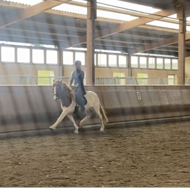 Flekkur ist ein toller fünfgägiger Wallach, mit ganz viel Naturtölt, aber auch sein außergewöhnlicher Trab ist nicht außer acht zu lassen. Er ist ein aufgeschlossener und positiver Wallach, der letzten Sommer seine Karriere als Reitpferd begonnen hat. Er zeigt sich unter dem Reiter fleißig und vertrauensvoll mit feinen Reaktionen und allen Gängen. Er geht brav ins Gelände in der Gruppe, sowie auch alleine. Aufgrund seines etwas schmaleren Gebäudes, könnten wir ihn uns gut für einen ambitionierten Jugendlichen vorstellen, der sich zusammen mit seinem Pferd weiterentwickeln möchte. Sein Großvater ist Glitnir frá Eikarbrekku (FIZO 8,48).