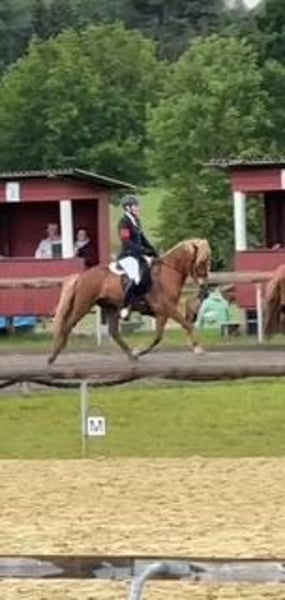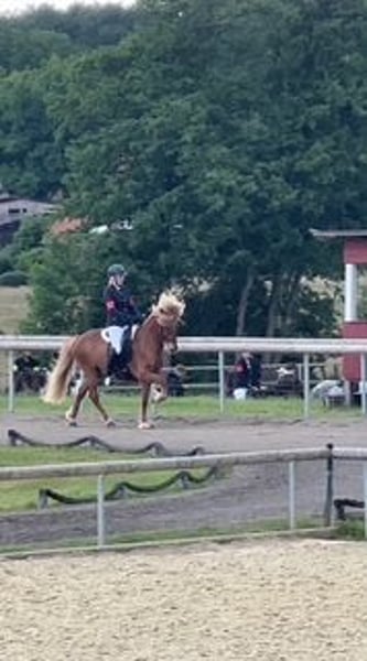Sproti ist ein neunjähriger Islandwallach, der 2021 aus Island nach Deutschland kam. Er ist Viergänger, mit sehr klarer Gangtrennung. Er hat einen ruhigen taktklaren schreitenden Schritt, sein Trab gehört mit zu seiner Lieblingsgangart und hat eine gute Schwebephase, der Galopp ist gut bergauf gesprungen und lässt sich wunderbar sitzen. Der Tölt ist immer taktklar und bis ins mittlere/hohe Tempo gut abrufbar. Er hat eine überdurchschnittlich gute Gangqualität. Außerdem ist er dressurmäßig gut ausgebildet und macht auch im Viereck eine gute Figur. Er kennt die Halle, Ovalbahn und das Gelände. Mit ihm kann man wunderbar alleine aber auch in der Gruppe ausreiten, er lässt sich jederzeit durchparieren und ist wirklich eine Lebensversicherung im Gelände. Im Umgang ist er absolut brav, er lässt sich ganz artig verladen und ist super artig beim Schmied. In der Gruppe ist er eher rangniedrig, weshalb für ihn eine Haltung mit einer ad libitum Fütterung am besten ist, so hat er die Möglichkeit über den Tag verteilt genügen Fresszeiten zu bekommen. Er steht im Offenstall in einer Wallachherde. Er hat Turniererfahrung und in den leichten Prüfungen V5 und T7 auch einige Platzierungen, letzes Jahr sind wir in der V2 und T3 gestartet, auch in der V2 konnten wir schon erste Erfolge verbuchen. Allerdings ist das Turnierreiten nicht seine Lieblingsdisziplin, weshalb ich mir für ihn gerne jemanden wünsche, bei dem das Turnierreiten nicht im Vordergrund steht. Er hat ein eher ruhiges bis mittleres Temperament. Er ist wirklich ein Traumpferd, für jemanden der sich ein Pferd mit sehr guter Gangqualität und Spaß im Alltag wünscht. Für den großen Sport fehlt ihm etwas das Selbstbewußtsein.
