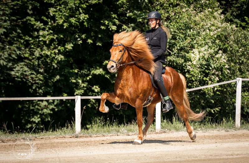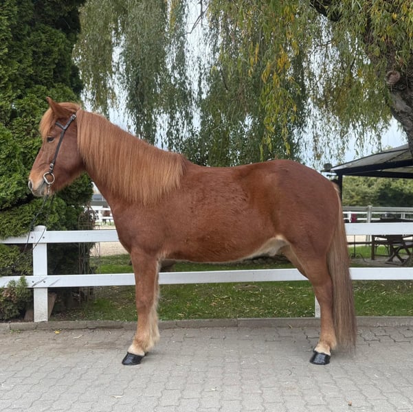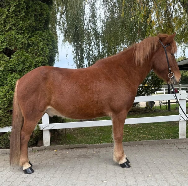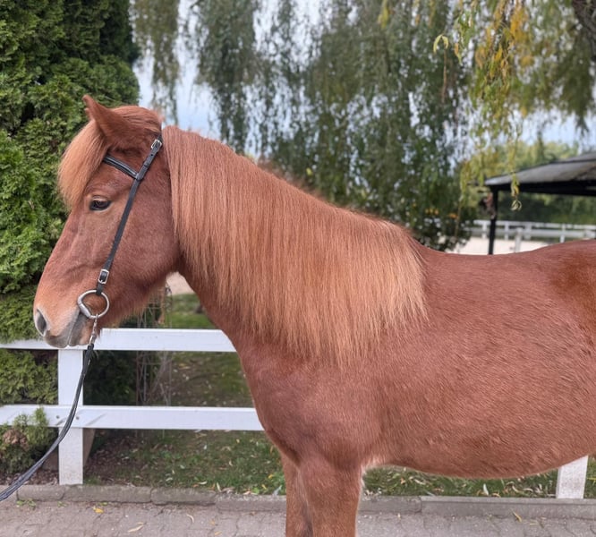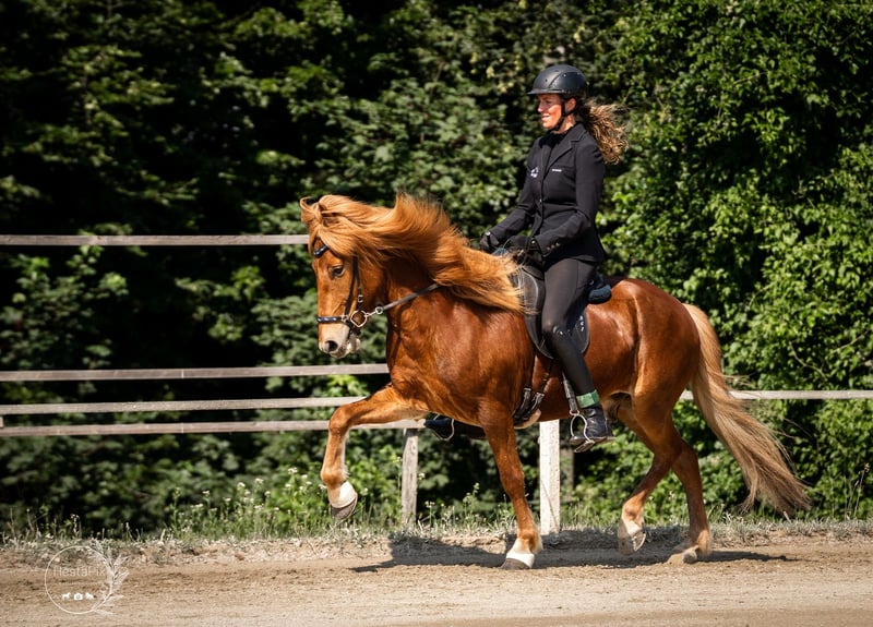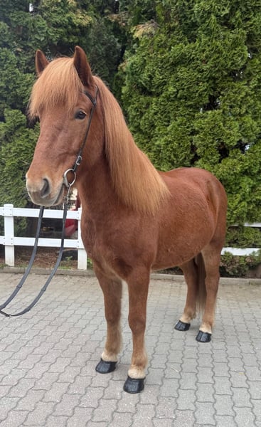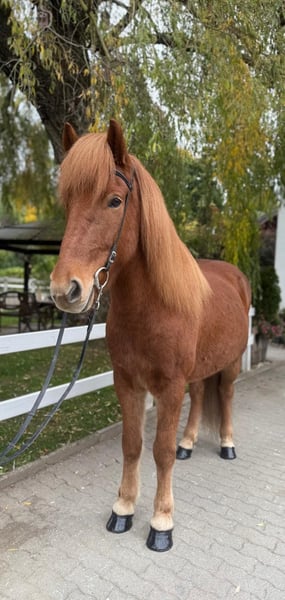 Mikki frá Grundarfirði Gelding, 147 cm tall *Born in Iceland in 2017 Four-gaited Ekzem-free Vaccinated, shod, and dewormed ✅ AKU including X-rays available ✅ Sire: Sveinn-Hervar frá Þúfu í Landeyjum 8.25 (Ext 8.06 Re 8.38)‼️ Dam: Sara frá Feti Dam sire: Roði frá Múla 8.07 (Ext 8.30 Re 7.84) Dam dam: Orri frá Þúfu í Landeyjum 8.34 (Ext 8.08 Re 8.61)‼️ Due to personal reasons, this golden treasure is for sale. Mikki is a horse you can rely on 100% – he is confident, always friendly, honest, trustworthy, and always eager to please his handler. This tall, stable yet elegant chestnut gelding captures everyone’s attention immediately with his loyal eyes and priceless character. He is a horse that is not easy to find every day – a partner who shines in sport, impresses in daily riding, and simply always brings joy. Mikki responds finely to aids, reacts excellently to voice commands, and offers an incredibly comfortable riding experience. Starting with his powerful uphill canter, his lively trot impresses with natural dynamism and good hindquarter activity, while his walk features a clear, relaxed, and flowing gait. His tölt is especially remarkable: always rhythmical, highly responsive, and with impressive tempo flexibility. He also demonstrates great talent for tölt without reins, in perfect frame. There is nothing standing in the way of a very promising sporting career, whether in T4/T2, T3/T1, or V2/V1. In daily life, he is simply a sweetheart. With his calm, positive nature, he remains unshaken by anything and always exudes confidence. Currently, he shares a paddock box with a mare but feels equally comfortable in a herd. Mikki is uncomplicated, friendly, and always interacts with other horses with calmness and social behavior. Price range: €25,000 – €28,000 If you are looking for an exceptional sport and leisure horse that combines beauty, character, and talent, you should definitely get to know Mikki. You are welcome to visit us in Lochen am See, Austria, by appointment at any time.