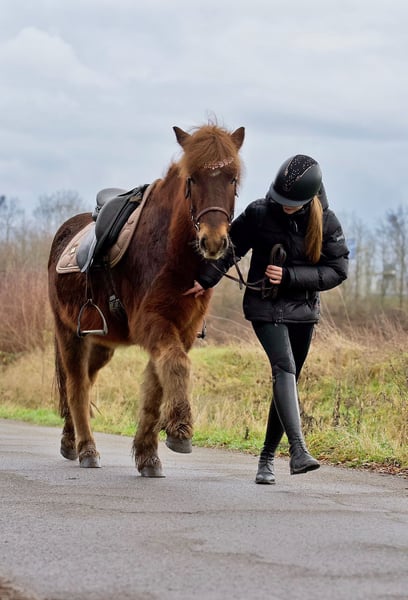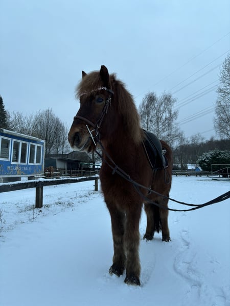 Absolutely stunning 9-year-old Island horse gelding with a height of 1.48 m. Due to personal circumstances, we unfortunately have to part with him. More details gladly provided by phone if interested. • The gelding is very clear-headed, lovable, and resilient. He has a lot of tölt and has received excellent training. • In groundwork, he demonstrates many tricks (Spanish walk, lying down, etc.). • Whether in desensitization training, flag work, out in unfamiliar environments, or in the field, he remains very calm and attentive. He is easy to load and is accustomed to regular training rides, showing calmness even in unfamiliar surroundings. • In daily handling, he is always friendly and motivated to do something with his handler. • He is also used to children riding him and is always well-behaved. • All in all, a wonderful family horse that is certainly suitable for beginners as well.