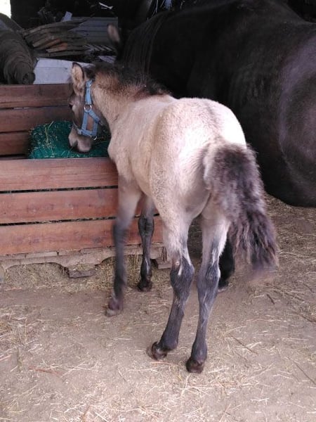 Propose a la réservation poulain hongre né début aout . PRIMUS sera disponible au sevrage fin mars/début avril. Il a une suberbe robe Isabelle ND1(légères traces primitives,raie de mule) . Sa mère est noire ND1 et son papa est isabelle silver dun . Sa taille estimée adulte est de 1m38. Il sera donc grand C. Tout comme ses parents il sera porteur et pourra être monter par un adulte sans soucis! Il est plein papier IS et peut donc a ce titre prétendre aux concours. PRIMUS a 5 allures (pas,trot, tolt, galop, amble) 2900€ Il vit au pré avec juments, entier et poulains de son age . Il respecte les clôtures et apprend gentiment l'ABC du poulain de son age. Il est de nature curieux et assez indépendant pour son age ! Il aime la compagnie humaine et vient chercher les grattouilles. Un jeune cheval demande expérience ou encadrement . D'autres photos sont disponibles sur demande.