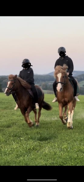 Zum Verkauf steht die 10-jährige Islandstute Garún frá Mosfellsbæ (Fuchs mit Blesse) mit einem Stockmaß von 129 cm. Garún verfügt über alle fünf Gänge und zeigt sich naturtöltig, wobei der Tölt ihre Lieblingsgangart ist. Der Pass ist vorhanden, wurde jedoch bisher noch nicht weiter herausgeritten. Sie ist sportlich, fein zu reiten und mit viel Go ausgestattet und eignet sich daher besonders für erfahrene Reiter. - geht alleine und in der Gruppe - an jeder Position in der Gruppe reitbar - deckt auch größere Reiter gut ab (Reiterin auf den Fotos 177 cm) - reagiert fein auf Körpersprache Garún kam im Dezember 2023 aus Island nach Deutschland und lebt aktuell in einer kleinen Offenstallherde. Aufgrund gesundheitlicher Umstände der Besitzerin stand sie längere Zeit und ist erst seit einigen Wochen wieder im Training / Beritt. Gesundheit / Handling - schmiede-, tierarzt- und verladefromm - regelmäßig entwurmt - leichtes Sommerekzem bekannt, aktuell symptomfrei, mit Decke gut zu managen Abstammung Vater: Kíljan frá Steinnesi (FIZO 8,78, Ehrenpreis für Nachzucht) Mutter: Tinna frá Síðu Großvater mütterlicherseits: Illingur frá Tóftum (Sieger Zuchtklasse Landsmót 2002, 2. Platz A-Flokk Landsmót 2008)