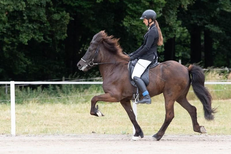 Pila is a lively and very friendly young mare with a lot of talent. She possesses four evenly developed and balanced gaits, with passage present, although she has not yet been trained in this movement. In tölt, the beautiful mare demonstrates a very high tempo variability during extended movements, with excellent rhythm. Her trot is also clear in tempo and can be performed at high speeds. The walk and canter are rhythmically clear and easy to ride. Pila has a very straightforward gait pattern and is well-trained in dressage for her age. This young talent has already completed a FIZO with very little training this year and received an 8.0 for tölt. Additionally, she is competing with a talented rider in dressage competitions and has achieved scores up to 6.0 in beginner classes. She successfully handled her first competitions very well, and both on the showground and during transport, she proves to be uncomplicated. She is a diligent horse type, so she is not suitable for an inexperienced rider or beginner. Pila is looking for a rider who enjoys working with a talented young horse – she is also suitable for an ambitious leisure rider. She is very confident and fearless in all situations and is also very affectionate and friendly towards people. Price category 4 – all information available at www.reithof-piber.at/verkaufspferde Contact: office@reithof-piber.at