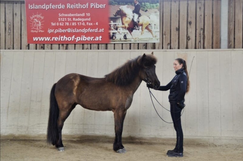 Pila is een levendige en zeer vriendelijke jonge merrie die zeer talentvol is. Ze beschikt over vier gelijkmatige, goed uitgebalanceerde gangen, pass is aanwezig, maar nog niet getraind. In de tölt toont het mooie paard een zeer hoge tempovarianz bij hoge bewegingen en een uitstekende pas. De draf is eveneens duidelijk in takt en mogelijk tot hoge snelheden. De stap en galop zijn in takt en makkelijk te rijden. Pila heeft een zeer eenvoudige gangenverdeling en is ook dressuurmatig goed opgeleid voor haar leeftijd. Dit jonge talent heeft dit jaar al met zeer weinig training een FIZO gelopen en kreeg voor tölt een 8,0. Daarnaast rijdt ze met een getalenteerde amazone op wedstrijden en behaalde in de beginnerswedstrijden scores tot 6,0. De merrie heeft haar eerste wedstrijden zeer succesvol doorstaan en toont zich zowel op het concoursterrein als tijdens het transport zeer makkelijk. Ze is een ijverig paard, daarom niet geschikt voor een onervaren ruiter of beginner. Pila zoekt een ruiter die plezier heeft in een getalenteerd, jong paard – ze is ook interessant voor een ambitieuze recreatie-ruiter. In alle situaties is ze zeer betrouwbaar in het terrein en onbevreesd, en tegelijkertijd heel mensgericht en vriendelijk. Prijscategorie 4 – alle informatie hierover op www.reithof-piber.at/verkaufspferde Contact: office@reithof-piber.at