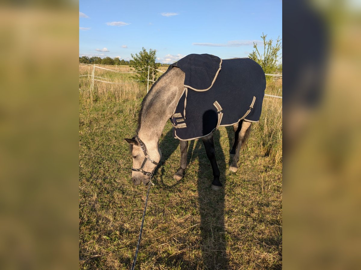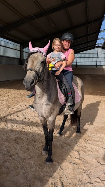 For sale is a beautiful and affectionate Island mix mare. She is incredibly gentle with children, very cuddly in general, and forms a close bond with her owners. Her temperament can be described as calm and balanced. Currently, she is ridden by my wife, daughter, and myself. We ride her English-style, as she was sold to us as an English-trained horse. However, recent signs suggest she may also have Western training, as she responds very well to Western aids, especially to the acoustic signals! She is absolutely safe in the terrain; she does not spook at large machinery or startled animals. The only thing she finds a bit strange are water sprinklers, but she calmly walks past them with gentle encouragement. She is sure-footed on all surfaces and is currently kept barefoot. She is a stunning buckskin mare, which appears lighter (amber-colored) in summer and turns more gray and dark gray in winter, with a face that almost resembles a raccoon's mask :-)