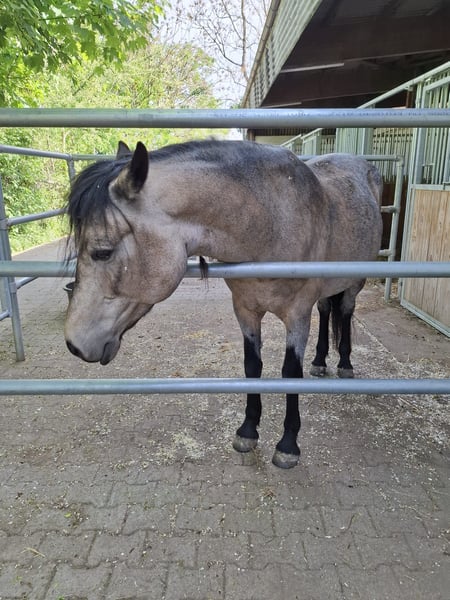 Verkaufe eine wunderschöne und liebevolle Islandmix-Stute. Sie ist unfassbar lieb zu Kindern, ist generell sehr verschmust und ihren Besitzern sehr nahe. Ihren Charakter würde ich als ruhig und augeglichen beschreiben. Sie wird aktuell von meiner Frau, meiner Tochter und mir geritten. Wir reiten sie im Moment englisch, da man sie uns als Englisch ausgebildet verkauft hat. Haben aber in letzter Zeit immer mehr Anzeichen dafür das sie ebenfalls eine Western-Ausbildung genossen haben könnte, da sie auf Westernhilfen, vor allem den akustischen Hilfen sehr gut reagiert! Sie ist im Gelände absolut sicher, sie erschreckt sich weder vor großen Landmaschinen noch vor aufgescheuchten Tieren. Einzig Wassersprenger findet sie etwas seltsam, läuft aber mit gutem zureden anstandslos daran vorbei! Sie ist trittsicher auf jedem Untergrund, und wird zur Zeit Barhuf gehalten. Sie ist eine wunderschöne Buckskin Stute, die im Sommer eher hell (Bernsteinfarben) ist und im Winter wird sie eher grau und dunkelgrau und im Gesicht fast sowas wie eine Waschbärmaske :-)