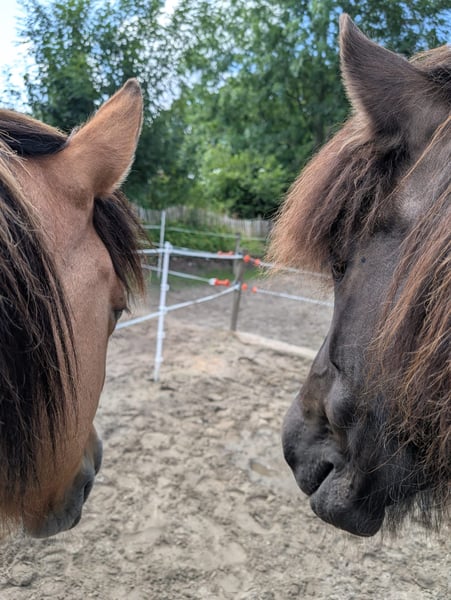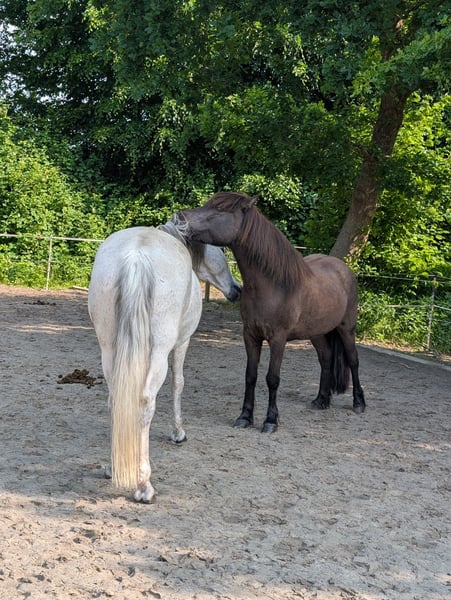 We are, with a heavy heart, seeking a new home for our Icelandic mare. She would be suitable for breeding, as she loves foals and would likely make a good mother. She has beautiful movement, a good pedigree (Ofsi vom Hrafnsholt, Sólon frá Hóli), and was awarded a premium as a foal. Our mare is 10 years old, healthy, and very social. She has been regularly dewormed, vaccinated, treated by a physiotherapist, and her teeth have been checked. She has comprehensive ground training: classical work in hand (all lateral movements in walk, leg-yield in trot), work on the long rein is already quite good, and she has begun liberty and circus training. Our mare is refined and very sensitive. She enjoys her work and also loves going for walks. However, she has experienced trauma and is not suitable as a riding horse. We have invested a lot of time, love, and training, but have come to the conclusion that riding her is not advisable. We are looking for a 5-star home, ideally with a pony or Icelandic horse community, preferably with an interest in groundwork and natural horsemanship. Please include a detailed introduction in your inquiry. We are happy to provide further information by phone.