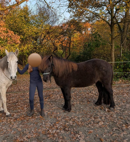 We zoeken met pijn in ons hart een nieuw thuis voor onze IJslandse merrie. Ze heeft een trauma en is niet geschikt als rijpony. We hebben veel tijd, liefde en training geïnvesteerd, maar we zijn tot de conclusie gekomen dat ze onder het zadel gevaarlijk blijft. Onze merrie is 10 jaar oud, gezond en zeer sociaal. Ze is regelmatig ontwormd, gevaccineerd, behandeld door een fysiotherapeut en haar tanden zijn gecontroleerd. Ze beschikt over een uitgebreide grondopleiding: klassieke handwerk (alle zijgangen in stap, schouderbinnenwaarts in draf), werk aan de lange teugel al behoorlijk goed, en ze is begonnen met liberty en circustraining. Onze merrie is fijn en zeer gevoelig. Ze heeft veel plezier in het werk en gaat graag wandelen. We wensen haar een 5-sterren thuis, bij een pony- of IJslandse paardenvereniging, waar ze plezier heeft in het werken aan de grond. Ze wil niet als bijzitter worden weggezet en heeft aandacht en een taak nodig. Misschien is ze ook geschikt voor de fokkerij, omdat ze zeer mooie bewegingen heeft, prachtig is en van veulens houdt. De selectie van de hengst moet echter met grote zorg gebeuren, zodat ze haar problemen niet doorgeeft aan haar veulens. Voor vragen graag met een uitgebreide introductie. We geven graag meer informatie telefonisch. We willen het nieuwe thuis graag vooraf bekijken. De verkoop gebeurt met een koopovereenkomst en voorbehoud van het recht van eerste koop.