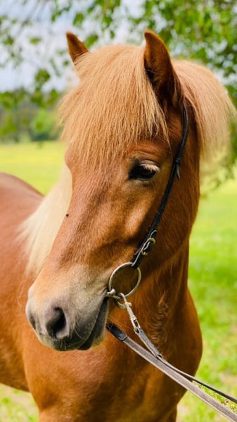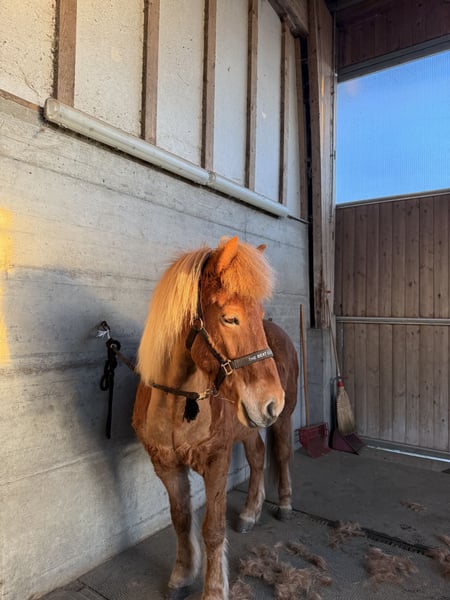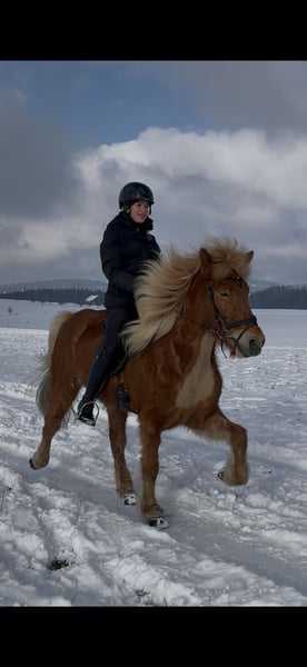 Schweren Herzens verkaufen wir unsere Halldóra vom Paffenbuck 2. Sie ist ein tolles Pferd mit schönem Exterieur, hat gute Gänge und einen lieben, aber dennoch anspruchsvollen Charakter. Sie ist sehr robust und steht bei uns bei allen Wetterlagen ohne Decke. Als Zusatzfutter bekommt sie nur Mineralien. Sie hat ihr Leben lang im Offenstall gelebt und hat sich dort sehr sozial gezeigt. Momentan steht sie in der Box, da sich keine andere Möglichkeit ergeben hat. Sie war bei uns nie krank. Sie steht brav beim Putzen und beim Hufschmied. Hänger fährt sie super, jedoch könnte man das Einsteigen noch etwas üben. Vom Charakter her ist sie ein liebevolles Pferd, das gerne kuschelt und mit einem in der Sonne schläft. Wichtig ist jedoch, dass der neue Reiter von Anfang an klar mit ihr ist. Sie neigt etwas dazu, selbst entscheiden zu wollen. Das kann man aber gut klären, wenn man sie von Anfang an nicht entscheiden lässt und ihr verständnisvoll, aber klar zeigt, was man von ihr möchte. Wenn man das erreicht, würde sie sehr viel für einen machen. Für den Sport im Sport-B-Bereich ist sie interessant. Sie hat einen tollen Tölt, der einem ein unglaubliches Gefühl gibt. Ihr Trab ist ebenfalls gut. Sie hat Turniererfahrung, ist aber bisher nur mit einem kleinen Mädchen in den Prüfungen gestartet. Schritt und Galopp muss man sich im Moment noch etwas erarbeiten. Aktuell ist sie nicht richtig im Training, sie kommt viel auf Ausritte mit und macht Freiarbeit auf dem Platz. Wir sehen sie auch sehr in der Zucht. Sie ist ein Prämienfohlen aus Bayern und hat, wie bereits erwähnt, ein tolles Exterieur sowie schöne Bewegungen. Ihr Vater ist Þróttur frá Hvalnesi. Seit wir sie 2020 gekauft haben, durfte sie regelmässig Beritt geniessen. Bei Fragen und/oder Interesse bin ich unter +41 79 571 68 00 zu erreichen.