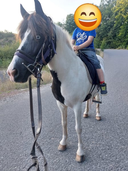Wer ein gut angerittenes Pferd zum weiter ausbilden für gehobene Freizeit, Zucht und auch Sport etc. sucht wird hier fündig. Genesis ist 2013 bei mir geboren, ist bis dato gesund, Ekzemfrei und unkompliziert im Handling. Schmiede- und Verladefromm. War länger in der Zucht und überzeugte mit qualitativer Nachzucht. Sie selbst ist Stutbuch 1 eingetragen mit 7,9 für Interieur und Gang. Durch den Zuchteinsatz ist sie reiterlich total unverbraucht. Aktuell etwas zu dick durch längere Standzeit aufgrund von Zeitmangel, aber nicht ausgeleiert von der Zucht sondern mit schönem harmonischem Gebäude mit stabilem Grundfundament. Sie hat keine Probleme mich mit 75 kg abzudecken und ist durch ihr Temperament ein in der Regel fleißiges und williges Reitpferd. Als Fünfgängering verfügt sie über einen stets taktklaren Schritt. Freilaufend zeigt sie meist ihren sicher und mit schönen Bewegungen vorhandenen Trab. Unter dem Reiter ist der Trab normalerweise einfach abrufbar solange sie im Temperament ruhig ist. Genesis ist noch wenig im Tölt gearbeitet, dieser ist dennoch sehr einfach abzurufen, benötigt aber noch etwas Unterstützungsarbeit und Muskelaufbau um ein gleichmäßiges Tempo und den Takt auf längerer Strecke zu halten. Galopp auf bergauf Strecke meistert sie absolut vorbildlich, lässt sich da auch schieben so das sie sehr schön springt und bergauf galoppiert. Auf flacher Strecke fehlt ihr dazu noch die Kraft und Balance, daher fällt sie dann gerne in Tölt oder auch Pass. Ist sie im Pass kann man diesen auch ohne Probleme beschleunigen. Sie wurde bis dato nicht im Pass ausgebildet daher kennt sie die Hilfen zum legen noch nicht. Mit mehr Training und damit verbundenem Muskel und Balance Aufbau sollte sie durch ohre qualitätsvollen Gänge auch noch gut im Sport vorstellbar sein. Aktuell ist sie weder für ängstliche Reiter noch für Anfänger oder Kinder geeignet. Mal ein Kind drauf führen ist absolut kein Problem, aber zum Kind selbstständig drauf reiten lassen ist sie zu Temperamentvoll. Gerne kann sie angeschaut und gegen Gebühr Probe geritten werden. Eine Stute mit vielen Möglichkeiten am beginn ihrer mittleren Jahre mit sehr schöner Scheckzeichnung und einem blauen Auge. Gute Abstammung.