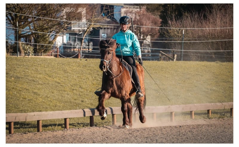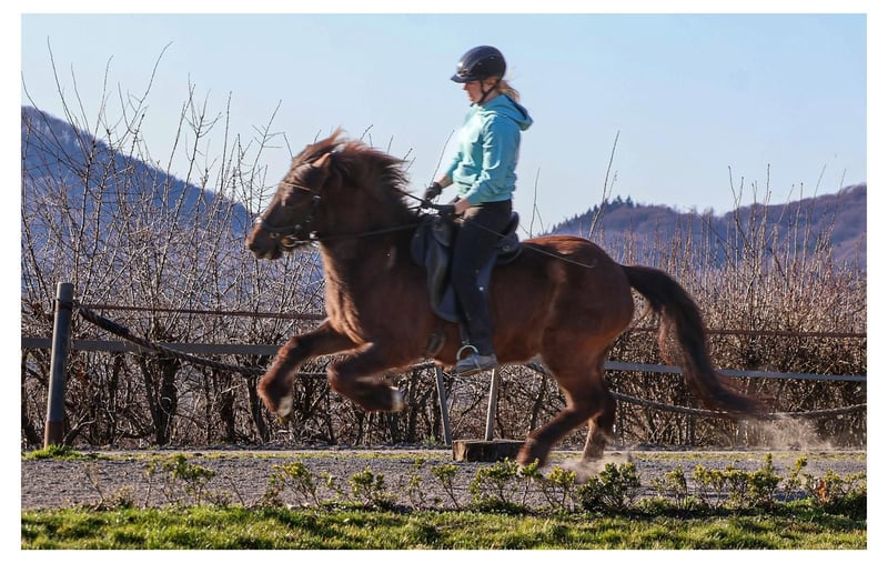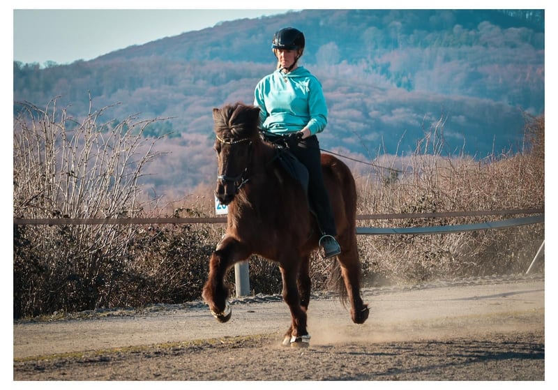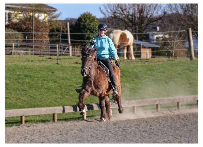 Flipa ist eine charmante, fünfgängig veranlagte Stute, die mit ihrer Freundlichkeit und ihrem außergewöhnlich bequemen Tölt sofort begeistert. Geboren auf dem GPZ, war sie zunächst als Zuchtstute bei den Feldmanns im Einsatz, bevor sie 2024 verkauft wurde. Nun steht sie erneut zum Verkauf, da ihr junger Reiter ihr körperlich entwachsen ist und Flipa für größere und schwerere Reiter schlicht zu wenig Kraft mitbringt. Die fein gebaute, eher schmale Stute. Sie ist leicht überbaut und hat einen Rücken mit leichtem Schwung. Aus diesem Grund wird sie neben ihrer Tätigkeit in der Reitschule regelmäßig von unseren Bereiterinnen dressurmäßig gearbeitet, um ihre Durchlässigkeit, Tragkraft und allgemeine Balance gezielt zu erhalten und weiter zu verbessern. Ihre große Stärke ist ganz klar der Tölt. Er ist ihre bevorzugte Gangart, stets taktklar und unglaublich bequem zu sitzen, dabei zeigt sie schöne, ansprechende Bewegungen. Mit weiterer Kraft und gezielter Arbeit wird sie hier noch konstanter in eine schöne Form finden. Der Schritt ist, wenn sie losgelassen ist, geschmeidig und von gutem Takt. Der Trab ist unter dem Reiter noch nicht lange abrufbar und kann behutsam weiterentwickelt werden, da sie bei zu viel Einwirkung sonst gerne wieder in den Tölt wechselt. Im Galopp benötigt sie derzeit noch ein etwas höheres Grundtempo, um diesen sicher halten zu können. Unter dem Sattel vermittelt Flipa ein durchweg sehr angenehmes und sicheres Reitgefühl und gehört zu den Pferden, auf denen man sich sofort wohlfühlt. Lässt man sie einfach machen, trägt sie ihren Reiter im bequemsten Tölt entspannt durch den Wald. Möchte man jedoch mehr Arbeit in Form von gezielten Lektionen, testet sie durchaus, wie ernst es dem Reiter ist. Dann kann sie kurz ihren Unmut zeigen, nicht aus Unwillen, sondern weil es für sie körperlich anstrengend wird. In diesen Momenten braucht sie einen ruhigen, erfahrenen Reiter mit Gefühl, Geduld und Verständnis für ihre körperlichen Voraussetzungen. Dabei wird sie jedoch niemals bockig, rennt nicht los und ist zu keiner Zeit unkontrollierbar. Im Gegenteil, sie möchte ihrem Menschen immer gefallen, manchmal fast zu sehr Flipa ist im Umgang ein absoluter Schatz. Sie ist gut erzogen und unkompliziert im täglichen Miteinander, genau das macht sie bei unseren Reitschülern so beliebt. Am GPZ steht sie ausschließlich in der Herde mit anderen Stuten und zeigt sich dort stets freundlich und sozial verträglich. Auch ihre Abstammung unterstreicht ihre klare Gangveranlagung und ihr angenehmes Reitgefühl. Ihr Vater Glampi vom Warmetal war ein traumschöner, extrem leicht zu reitender Supertölter und Sohn des Tölt-Weltmeisters Thor von Sporz. Damit ist er Halbruder des ebenfalls von Andreas Trappe vorgestellten und gekörten Tölt-Weltmeisters Tyr vom Rappenhof. Von mütterlicher Seite stammt sie aus der Stute Fregn fra Minni-Borg, einer guten, sehr klar veranlagten Viergangstute, die ihre Zuverlässigkeit und Solidität deutlich weitergegeben hat. Flipa eignet sich ideal für leichtere, nicht zu große Reiter, die Spaß am Reiten haben, flott durch den Wald tölten wollen oder vielleicht auch einmal Turnierluft in Töltprüfungen schnuppern möchten. Vor allem sucht sie eine feste Bezugsperson, für die sie nicht nur ein verlässliches Reitpferd, sondern auch eine treue beste Freundin ist. Haben Sie Fragen oder möchten einen Termin vereinbaren? Kontaktieren Sie Frederic Feldmann gerne per E-Mail unter ff@gangpferdezentrum.de oder telefonisch unter 0151/17373914. Alternativ erreichen Sie uns auch jederzeit über unsere Instagram-Seite. Wir freuen uns auf Ihre Nachricht.