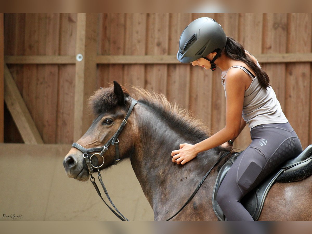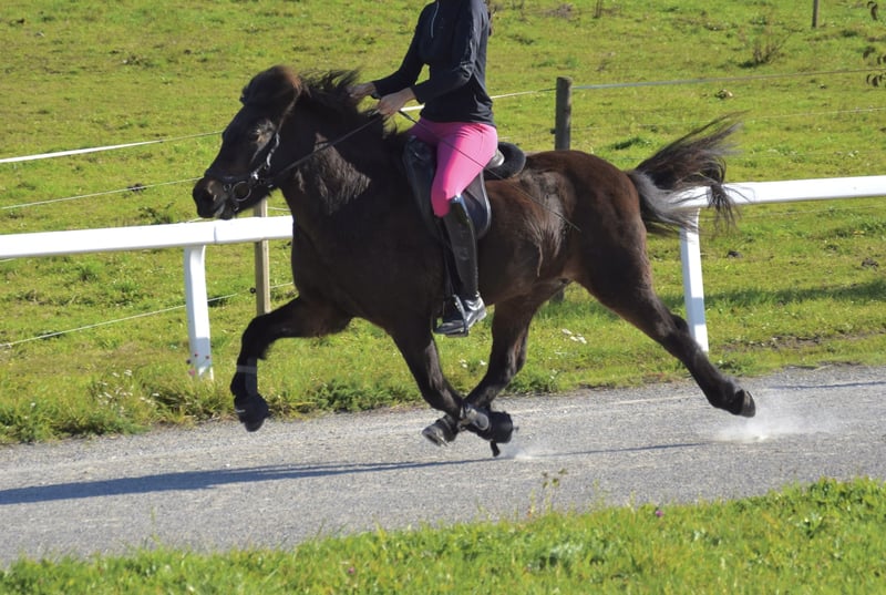 Sol von Möllenbronn ist eine fünfgängig veranlagte Stute mit viel Rennpass. Sie hatte bei uns einige sehr schöne Fohlen, wovon bereits 2 in diesem Jahr erfolgreich gekört wurden. Nach ihrem letzten Fohlen wurde sie wieder schonend antrainiert und wird seitdem geritten. Sols Vater ist der bekannte Stáli frá Kjarri, ihre Mutter ist eine Vidalin frá Hamraholi Tochter. Sie hat sehr viel sehr guten Rennpass und konnte dies auch schon im Reitabzeichen 3 unter Beweis stellen (Note 1,5). Auch im Umgang ist sie sehr brav und motiviert. Neben den Rennpass hat sie viel Tölt. Der Trab und Galopp benötigen noch etwas mehr Routine und Balance. Neben dem Reiten (im Gelände, auf der Ovalbahn oder auch auf dem Reitplatz), ist Sol für jeden Spaß zu haben und macht auch gerne Bodenarbeit etc. Auch Kinder sind sie bereits geritten. Sie steht in einer gemischten Herde und ist Ekzemfrei. Außer einem ausgeheilten Griffelbeinbruch vor vielen Jahren, der sie nicht weiter einschränkt, ist sie vollkommen gesund. Wir können uns Sol sehr gut als perfekten Freizeitpartner, Familienpferd oder auch als Turnierpferd für die Passdisziplinen vorstellen.