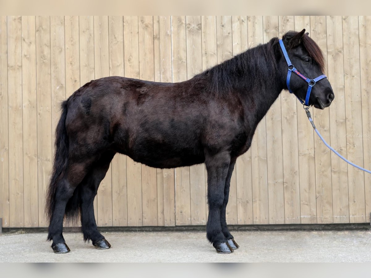 iðja frá Borgarnesi - Elite five gaited mare with charm and versatility! ✨ mare | *2013 in IS | five-gaited | black M: Byglia frá Borgarnesi MV: Blær frá Hesti (8.5 ges. - 8.69 RE) Sire: Steðji frá Skipaskaga (8,45 ges. - 8,54 RE) VV: Stáli frá Kjarri (8,76 total - 9,09 RE) Viðja frá Borgarnesi is an enchanting and well-trained five gaited mare who came to us in Austria directly from Iceland. With an impressive FIZO score of 8.11 and top marks such as 9.0 for her expressive head and 8.5 for pass and neck-withershot-shoulder, she rightly holds the elite title. Her particular strength lies in the pass - fast, safe and consistent in this spectacular gait. But her tölt is also impressive: fluid, clear and with chic movement in all gaits. Viðja has been with us here in Austria since 2022, where she gave birth to a promising, beautiful black pinto foal in 2023. With her fearless, friendly nature, Viðja is not only a reliable leisure horse, but also a real all-rounder for ambitious riders. Whether in sport, as a luxury leisure partner or in breeding - Viðja has everything you could wish for in a dream horse. If you are interested in this special mare, please send an e-mail to: reiten@burghauser.at