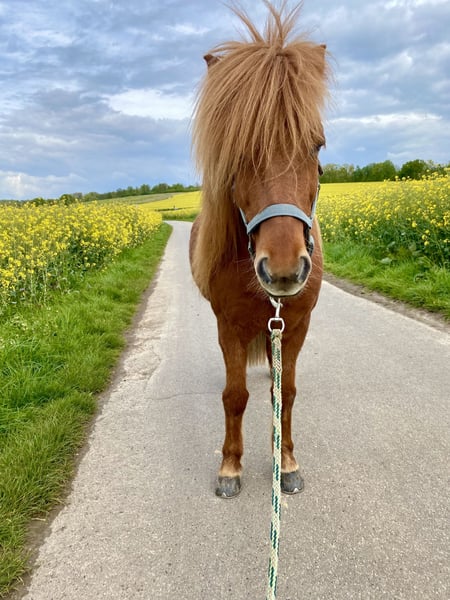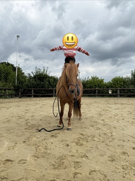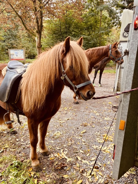 Elskamin (von mir Elsa genannt) ist eine wunderschöne deutsch gezogene Islandstute (geb 2012) mit viel langer Mähne. Ihr Charakter ist ausgesprochen freundlich und dem Menschen gegenüber aufgeschlossen. Elskamin ist immer bemüht ihrer Reiterin zu gefallen. Sie ist fünfgängig veranlagt mit viel Tölt, wobei der Pass nicht ausgebildet wurde. Sie hat einen raumgreifenden, fleißigen Schritt mit viel Vorwärts. Der Trab ist schwungvoll, der Galopp ist etwas islandtypisch gelaufen und sie tut sich im Viereck noch etwas schwer den Galopp zu halten. Elskamin geht gerne ins Gelände, dabei ist es ihr egal ob alleine oder in Gesellschaft. Sie ist stets zuverlässig und nicht ängstlich oder schreckhaft. Elskamin arbeitet aber auch sehr gerne auf dem Platz oder im Roundpen. Sie ist artig im Umgang, steht brav am Anbinder, geht problemlos auf den Hänger und kennt Ausflüge in unbekannte Gebiete. Sie geht mit dir wohin du willst und geht immer mutig voran, wo andere Pferde stocken. Die Behandlung beim Tierarzt oder Hufschmied sind problemlos. Sie kennt auch den Umgang mit kleinen Kindern und ist jederzeit vorsichtig mit den Kindern. Gesundheitlich ist sie unkompliziert. Kein Exzem, keine Koliken. Sie hatte eine Augen-OP in 2022. Dies ist aber vollständig verheilt. Aufgrund ihres mittleren Tempraments würde ich sie nicht für Anfänger empfehlen. Um Reittourismus zu vermeiden, gehen 25 EUR in Elsas Futterkasse 😊 Ich glaube sie wäre eine ganz tolle Freundin für ein Junges Mädchen oder Jungen, was schon etwas Reiterfahrung gesammelt hat, aber natürlich auch für Erwachsene. Ich könnte sie mir aber auch gut für die Reittherapie und Reitschule vorstellen. Ich verkaufe Sie schweren Herzens, weil ich ihr aufgrund der Familie nicht mehr gerecht werde. Ich bitte wirklich nur um ernstgemeinte Anfragen. Ich freue mich sehr über ein persönliches Gespräch.