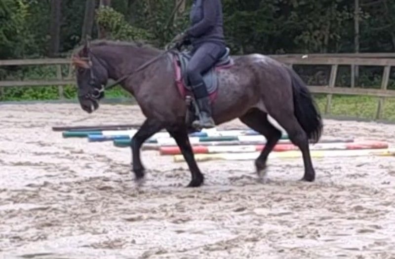 Palína is a sweet 14-year-old roan-colored mare who truly deserves her forever home! We see Palína as a recreational horse ideal for enjoyable outdoor rides, possibly combined with training in the arena. She has a light dressage foundation, allowing her to perform lateral movements and in-hand work, but she is not extensively trained in these areas. When turned out, her ears are forward, and she moves forward willingly with a good stop. She is traffic-safe and not easily spooked. When riding with another horse, Palína prefers to be at the front. This horse with a heart of gold is looking for an owner with a similarly kind heart for her. • Born in Iceland in 2011, arrived in the Netherlands in 2021 • Roan color • Mare • Approx. 14.0 hh (about 140 cm) • Four-gaited (walk, trot, canter, and tölt) • Traffic-safe, can go out alone or with company • Forward-moving but with a reliable stop • Can be ridden with a bit or bitless • Not shod here • Fully vaccinated and has seen the dentist • During summer, she wears a blanket and fly mask and looks great • Loading onto a trailer, farrier, and hosing down are no problem • Price estimate: €5,000–€6,500 Could Palína become your new heart horse? • Rider weight up to 70 kg (154 lbs) • Stable system with daily ample turnout A bit of background: Palína was only recently brought into new hands; she was taken from Iceland at age 9, unbroken. Since then, she has been ridden but continued to experience significant tension, not just under saddle but also in handling. She found all human-related interactions very frightening: haltering over her ears, gentle grooming or pats, blanket application, farrier work, waving arms from three meters away, etc. Last year, she came to me through a circuitous route. After more than a year of training and building trust, focusing on helping her cope with her anxieties, she has become a completely different horse. She now knows how to relax herself, and things that previously caused panic no longer trigger her. She is truly ready for her forever home! Although her tension issues are now resolved and she is no longer a ‘problem horse,’ I am looking for an owner who understands her background and can continue to support her with small training steps when needed. Of course, I am also happy to guide and support her new owner in this process.