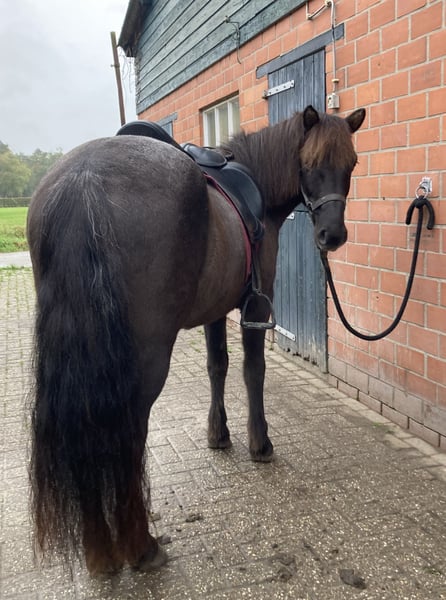 Pálína is een erg lieve 14-jarige Roan-kleurige merrie, die nu echt haar forever-home verdient! Haar karakter is erg zachtaardig; rustig en ietwat terughoudend, zeker geen druktemaker of drammer. We zien Pálína als recreatiepaard om lekkere buitenritten mee te maken, eventueel afgewisseld met rijden in de bak. Ze is een 4-ganger dus heeft stap, draf, galop en tölt (als je dit van haar vraagt). Ze heeft een lichte dressuurmatige basis waarin ze bijvoorbeeld in aanleuning en zijgangen kan lopen, maar ze is hierin niet ver doorgetraind. Balkjes lopen of een klein sprongetje doet ze ook braaf. Maar buitenrijden vindt ze het allerleukst. Buiten gaan haar oortjes naar voren. Ze is ze lekker voorwaarts, met een goede rem. Ze is zeer verkeersmak en vindt niet snel iets spannend. In haar eentje naar buiten vindt ze helemaal prima. Met een ander paard is overigens ook helemaal prima, het liefst wil ze dan voorop Ze heeft (lichte) eczeem maar met een deken en vliegenkap op is het zeer goed onder controle en ziet ze er heel mooi uit. Haar Rambo-Horseware deken en vliegenkap gaan uiteraard ook met haar mee. Dit paard met een gouden hartje zoekt een dito baasje met een gouden hartje voor haar. · Geboren op IJsland in 2011, naar Nederland gekomen in 2021 · Roan-kleurig · Merrie · Stokmaat ca. 140cm · 4-ganger · Verkeersmak, kan samen en alleen naar buiten · Voorwaarts maar met goede rem · Kan zowel met bit als bitloos worden gereden · Staat bij ons niet op ijzers · Volledig gevaccineerd en naar de tandarts geweest · Dingen zoals trailerladen, hoefsmid en met water afspuiten geen probleem · Prijsindicatie 5.000-6.000 · 📍Gelderland, nabij Arnhem/Apeldoorn/Zutphen Wordt Pálína jouw nieuwe maatje? Wij vragen voor haar: · Ruiter maximaal 70kg · Stallingssysteem met dagelijks veel bewegingsvrijheid (dus niet 22 uur per dag op stal)