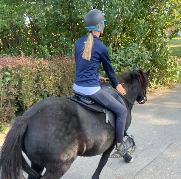 Icelandic mare Hrapa from Störblick – Heart horse seeks heart person The 2009-born, 131 cm tall four-gaited mare is a sensitive, intelligent, and reliable leisure partner. She responds to the slightest aids, enjoys tölting on her own, and is absolutely safe in the terrain – traffic, dogs, or agricultural machinery do not impress her. Hrapa is familiar with riding, hand horse work, groundwork, and double lungeing. She masters many exercises solely by voice or body posture. She is shoe- and loading-friendly, curious, and motivated. She is looking for an experienced, calm rider (max. 75 kg) who enjoys fine communication and clear leadership. Not a beginner horse. With patience and trust, she will become a loyal leisure partner, especially in the terrain. In 2023, she had laminitis, which has completely healed (X-rays available). With an adapted diet (hay & mineral-based, grain-free) and sufficient exercise, she is easy to handle. She is currently barefoot, regularly vaccinated, and dewormed. Housing: She needs close social contact, a box with daily turnout, or a run-in barn with grazing time by arrangement. Included are bridle, accessories, and, if desired, her matching Massimo tölt saddle (for an additional fee). She has all papers and has raised a foal (2015).