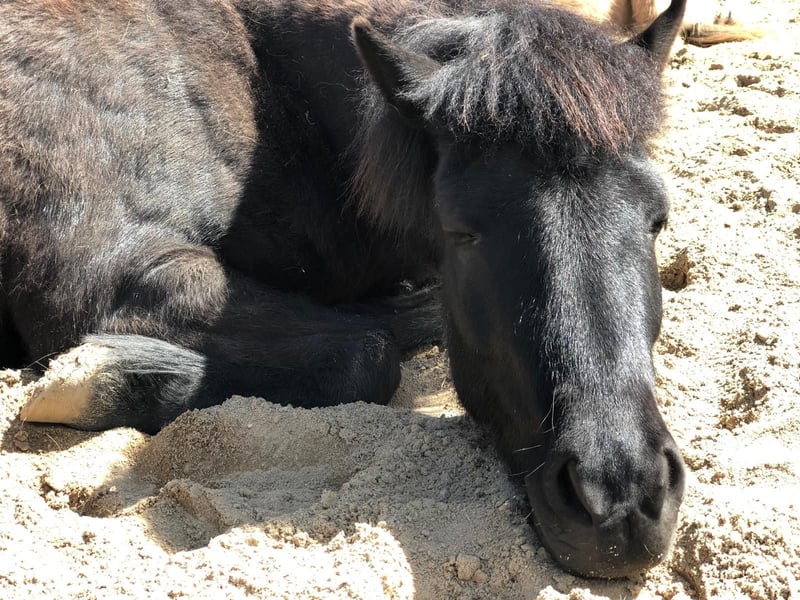IJslandse merrie Hrapa van Störblick – Hartsvriend zoekt hartsvriend(in) De in 2009 geboren, 131 cm grote vierganger is een gevoelige, intelligente en betrouwbare vrijetijdspartner. Ze reageert op de kleinste hulpen, töltert graag uit zichzelf en is in het terrein absoluut veilig – verkeer, honden of landbouwmachines maken geen indruk op haar. Hrapa kent rijden, handpaardwerk, grondwerk en dubbele longe. Veel oefeningen beheerst ze alleen op stem of lichaamshouding. Ze is hoefsmid- en laadvriendelijk, nieuwsgierig en gemotiveerd. Ze zoekt een ervaren, rustige ruiter (max. 75 kg) die plezier heeft in fijne communicatie en duidelijke leiding. Geen beginnerspaard. Met geduld en vertrouwen zal ze een loyale vrijetijdspartner worden, vooral in het terrein. In 2023 had ze een hoefbevangenheid, die volledig genezen is (röntgenfoto's zijn beschikbaar). Bij aangepaste voeding (hooi- en mineralenvoeding, graanvrij) en voldoende beweging is ze probleemloos te hanteren. Ze is momenteel onbevangen, regelmatig gevaccineerd en ontwormd. Huisvesting: Ze heeft nauw sociaal contact nodig, een box met dagelijkse uitloop of een open stal met weidegang in overleg. Bijgeleverd worden hoofdstel, toebehoren en op verzoek haar passende Massimo-töltzadel (tegen meerprijs). Ze heeft alle papieren en heeft een veulen (2015) gehad.