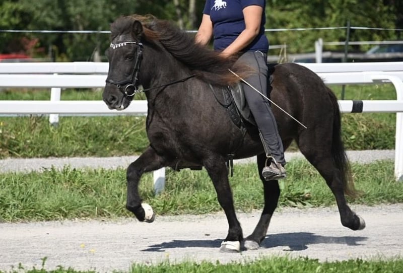 Svala ist eine 138cm große Viergangstute mit viel Tölt. Sie lief bei uns bereits im Reitabzeichen 1 und 2 erfolgreich mit. Svala steht aktuell in einer gemischten Herde und ist dort und auch im Umgang sehr unkompliziert. Ihr Tölt ist immer taktklar und unserem Hofturnier konnte sie auch schon etwas Turnierluft im Viergang und Tölt schnuppern. Sie lief bei uns auch im Reitunterricht unter Fortgeschrittenen Reitern. Da sie manchmal ihren eigenen Kopf hat ist sie nicht ausschließlich für Anfänger geeignet. Sie hatte vor einigen Jahren einen Strahlbeinbruch hinten, der allerdings vollkommen ausgeheilt ist und der sie auch nicht einschränkt.