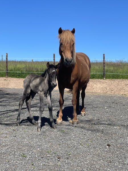 Islandstute zu verkaufen Arndis frá Árbakka (IS2009286078- geb. 2009) Sucht einen neuen Wirkungskreis! Arndis ist ein super gut ausgebildetes Reitpferd mit vorhandenem Temperament. Wenn du danach fragst, würde sie dich auch bis ans Ende der Welt tragen. Sie ist eher viergängig veranlagt, mit viel Tölt und super klar getrennten Grundgangarten mit viel Bewegung. Ihr Papa ist Fünfgänger der in F1 und Pass auch schon mehrmals auf den Weltmeisterschaften vertreten war. Warum verkaufe ich so ein tolles Pferd ? Arndis hat bei mir in den letzten drei Jahren jeweils ein Fohlen bekommen und alle drei sind so super gelungen, dass ich diese gerne behalten möchte. Sie hat immer beim ersten Versuch aufgenommen, hatte nie Komplikationen bei der Geburt und ist rundherum eine tolle und sehr fürsorgliche Mutter. Arndis selbst ist knapp 130cm - das vererbt sie nicht unbedingt. Der größere Anteil ihrer Fohlen ist deutlich größer wie sie geworden (bzw. hat sie bereits in jungen Jahren Größentechnisch eingeholt) Arndis Fohlen aus 2025 wurde gerade abgesetzt, so dass sie jetzt auch bereit für einen Umzug ist. Arndis hat Ekzem: mit 24/7 Decke und Fliegenmaske braucht es jedoch fast keine weitere Pflege. Sie hat außerdem eine leichte Heustauballergie. Diese zeigt sich aber erst nach einer knappen Woche reine Heu-Fütterung (ohne zusätzliches Gras). Mit Wiese und Heulage bzw. nur gelegentlich Heu ist sie Symptomfrei. Arndis ist regelmäßig entwurmt und hat die Hufe ausgeschnitten bekommen. Geritten wurde sie seit 2022 nicht mehr- dafür müsste man sie wieder entsprechend antrainieren. Typisch Isländer aus Island ist sie dem Menschen gegenüber höflich zurückhaltend. Kekse ja gerne, aber extra dafür fragen tue ich nicht. In der Herde ist sehr unkompliziert und im Zweifel eher rangniedrig. Mit Fohlen bei Fuß versucht sie sehr Ärger aus dem Weg zu gehen, außer jemand legt es wirklich drauf an. Alle drei Fohlen aus 23,24 und 2025 sind bei der Fohlenschau mit 8.00 oder besser vorgestellt worden. Videos davon sind vorhanden.