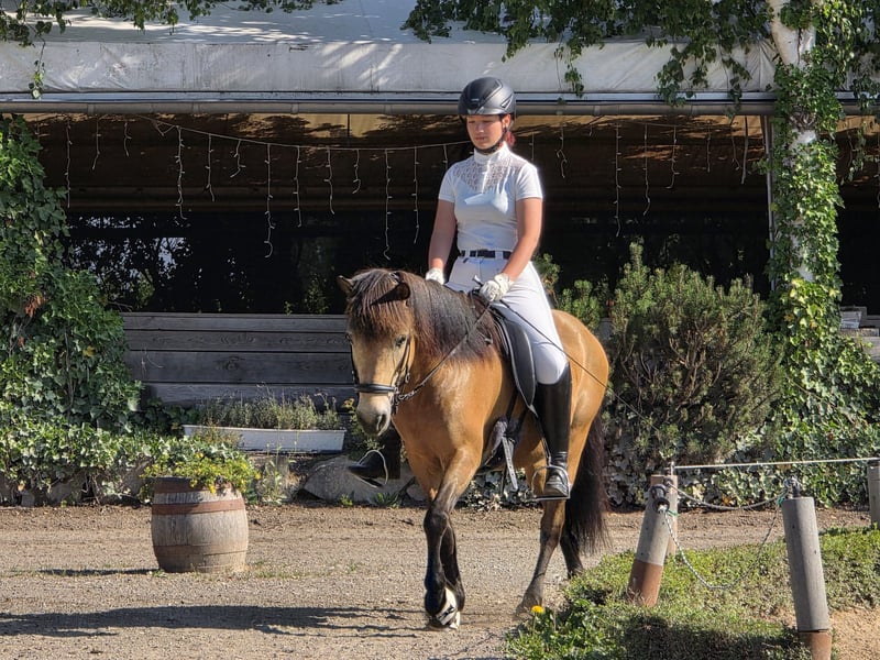 Ich gebe meine fast 17 Jährige Islandstute Spyrna fra Twonby schweren Herzens aus Zeitgründen ab. Sie ist seit 2023 in meinem Besitz und hat seit dem große Fortschritte gemacht. Derzeit steht sie in 53604 Bad Honnef mit einer anderen Stute zusammen jedoch ist sie sowohl mit Stuten als auch mit Wallachen in der Herde verträglich. Spyrna hat bereits 3 Fohlen bekommen welche alle gesund sind. Sie ist ein sehr aufgewecktes und lebhaftes Pferd welches definitiv NICHT für Anfänger geeignet ist. Sie braucht einen erfahrenen Reiter der ihr helfen kann balance und Takt zu finden. Sobald man sie einmal für sich gewonnen hat geht sie mit einem durchs Feuer. Spyrna ist sehr lernwillig und motiviert beim reiten sowie bei der Bodenarbeit. Sie ist absolut unerschrocken egal ob Platz oder Gelände. Von mir wurde sie nur in den 4 Gangarten (Schritt, Trab, Tölt, Galopp) geritten dennoch hat sie die Veranlagung zum Rennpass. Sie ist ein wirklich toller Freizeit Partner ich könnte mir aber auch vorstellen dass noch viel Spaß an Turnieren hätte. Zwei Sättel sowie sämtliches weitere Equipment kann gerne übernommen werden. Weitere Videos können auf Anfrage gesendet werden. Falls sie dein Interesse geweckt hat oder du weitere Fragen hast kannst du mir gerne schreiben.