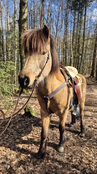 Ik geef mijn bijna 17-jarige IJslandse merrie Spyrna fra Twonby, helaas vanwege tijdgebrek, in verkoop. Ze is sinds 2023 in mijn bezit en heeft sindsdien grote vooruitgang geboekt. Momenteel staat ze in 53604 Bad Honnef, samen met een andere merrie, maar ze is zowel met merries als met ruiners goed te mengen in de kudde. Spyrna heeft al drie veulens gekregen, die allemaal gezond zijn. Ze is een zeer levendig en alert paard dat absoluut NIET geschikt is voor beginners. Ze heeft een ervaren ruiter nodig die haar kan helpen balans en takt te vinden. Zodra je haar eenmaal hebt leren kennen, gaat ze door het vuur voor je. Spyrna is zeer leergierig en gemotiveerd, zowel onder het zadel als bij de grondwerkzaamheden. Ze is absoluut onbevreesd, of het nu op de piste of in het terrein is. Ze is door mij alleen gereden in de vier gangarten (stap, draf, tölt, galop), maar heeft ook aanleg voor de renpass. Ze is echt een geweldig recreatiepaard, maar ik kan me voorstellen dat ze ook veel plezier zou hebben op wedstrijden. Twee zadels en alle andere benodigdheden kunnen graag worden overgenomen. Meer video's kunnen op verzoek worden gestuurd. Als ze je interesse heeft gewekt of als je nog vragen hebt, mag je me gerust een bericht sturen.
