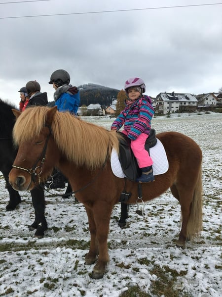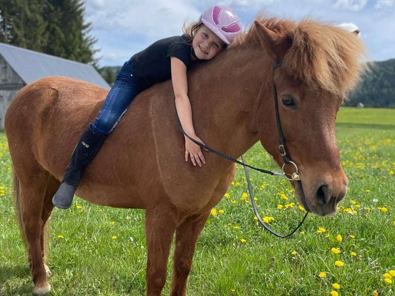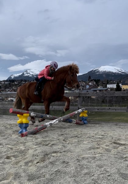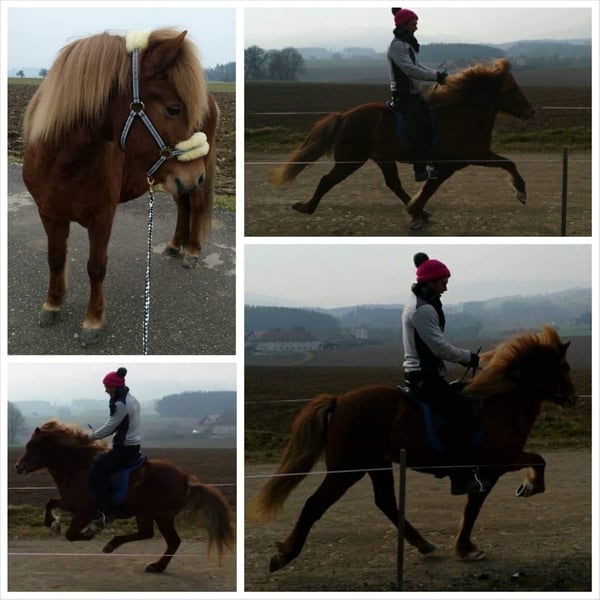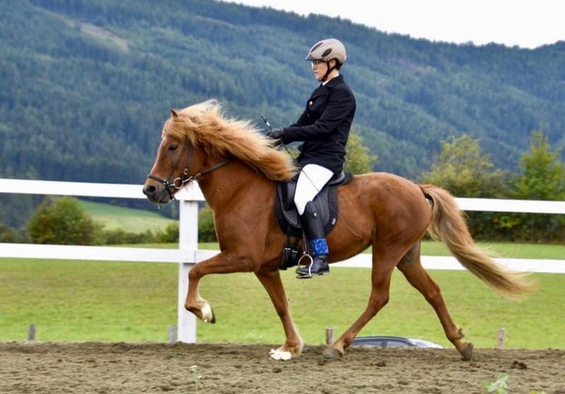 AT2009220959 Leiding ist 16 Jahre alt und eine echte Perle. Eine Freude für jeden feinen Reiter und ein absoluter Lehrmeister für Kinder und Jugendliche. Sie ist sehr sensibel im Sinne von leichtrittig, ganz fein, reagiert aufmerksam auf Sitz, Atmung und Stimme aber trotz ihres sensiblen Charakters ist sie absolut Bomb-proof. Leiding hat vor nichts Angst und schreckt sich vor nichts und niemandem. Verkehr, Traktoren, Schneepflug, Zug - alles kein Problem. Sie maschiert immer und überall zielsträbig vorran und ist ein Fels in der Brandung. Alleine als auch in der Gruppe. Von der Gangverteilung ist sie ein sehr ausgeglichener Fünfgänger. Ganz leicht zu reitender Tölt, sicherer Trab, bequemer Schritt. Galopp ist eher gelaufen aber im Gelände und vorallem leicht bergauf gut zu reiten. Leiding hat einen bombensicheren Rennpass, den sie liebt und locker im Tölt auflöst. Bei erwachsenen Reitern geht sie flott und fleißig vorwärts, Kinder trägt sie mit besonderer Vorsicht und passt richtig gut auf. Auch im Umgang ist sie absolut kinderlieb. Sie lässt sich geduldig führen, putzen, Hufe auskratzen, Mähne bürsten, es macht ihr nichts aus, wenn die Bürste auf den Boden kracht oder das Kind neben ihr mitsamt dem Sessel umfällt. Dressurmässig ist sie gut ausgebildet und ein echter Lehrmeister für Schüler/innen: Auf kleinste Hilfen reagiert sie mit Schulter herein, Krupp herein. Sie kann Traversalen im Schritt und Tölt, Schulterherein geht auch im Trab. Leider hat sie eine Heustauballergie und bräuchte deshalb einen Stall der für Allergiker ausgerichtet ist. Mit bedampftem/nassen Heu oder auch mit Heulage/Gärheu ist sie komplett beschwerdefrei. Weil sie einen sehr festen, kompakten und recht engen Huf hat bekommt sie sehr leicht Strahlfäule. Gute regelmässige Bearbeitung, Pflege und trockene Haltung ist also ebenso notwendig für sie. Dafür lässt sie sich super barhuf reiten: Schritt, Trab, Tölt und Rennpass sind barhuf gar kein Problem, nur im Galopp tut sie sich auf hartem Boden barhuf etwas schwer. Wenn sich ein Perfect Match ergeben würde, eine Familie die unsere Perle genauso liebt und schätzt wie wir, mit optimalen Haltungsbedingungen könnten wir uns einen Verkauf vorstellen. Weitere Informationen, Fotos und Videos gerne auf Anfrage. Ein Besuch ist jederzeit gerne möglich.