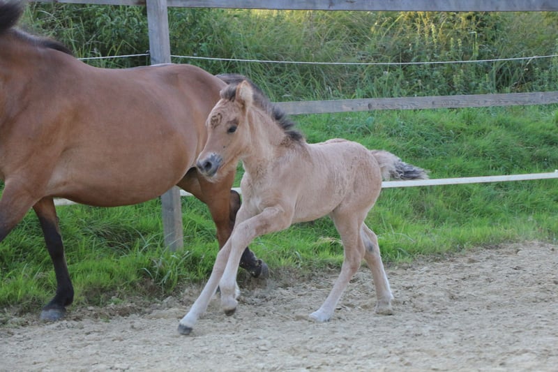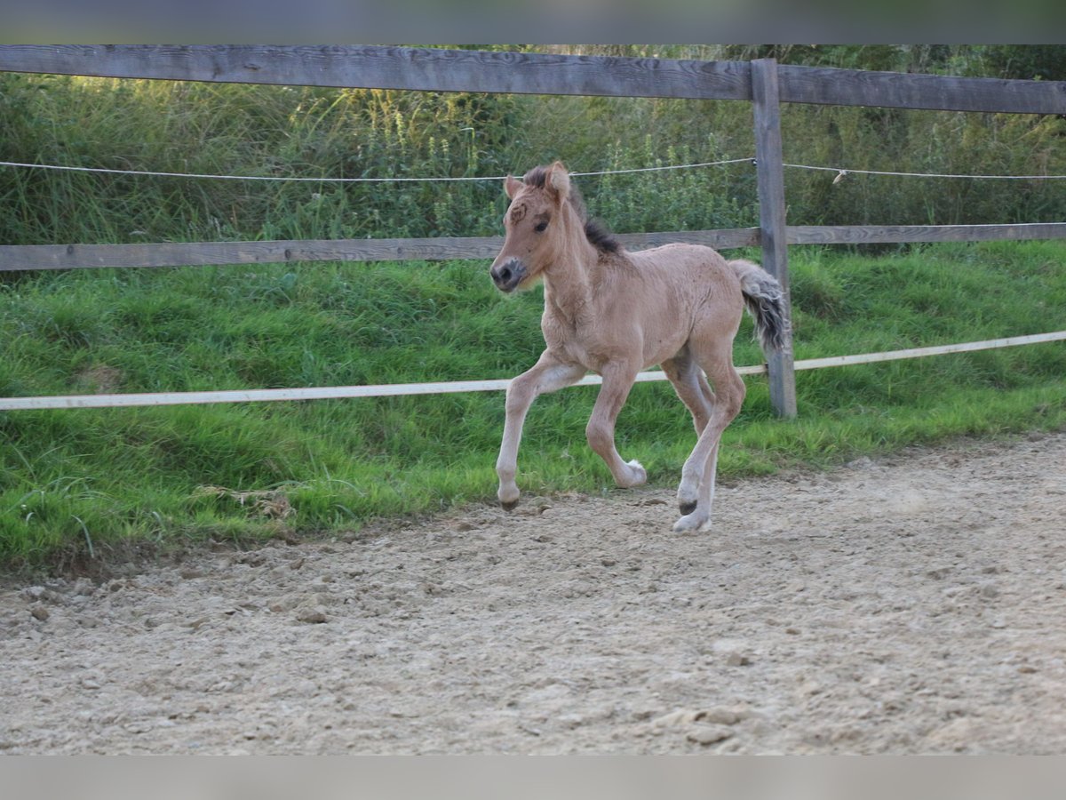 Verkaufe, wenn alles passt, mein wunderschönes Braunfalbfohlen. Eydís von Páskadagur ist am 24.07.2025 geboren. M: Elfa vom Lubberland V: Brilljant frá Efri-Fitjum Sie zeigt sich fünfgängig und verfügt über eine gute Aufrichtung und viel lockeren Tölt. Eydís ist ein unerschrockenes, selbstständiges und aufgewecktes junges Mädchen. Sie kennt Hufegeben, putzen und das Halfter. Beim Hängerfahren und in fremder Umgebung bleibt sie vollkommen gelassen. Farblich wird sie wie ihre Mutter. Die Mutter ist eine großrahmige (ca.1,45), stabile Stute mit butterweichen, gut verteilten fünf Gängen. Jeder Gang ist jederzeit abrufbar und sie verfügt über viel Ausdruck. Charakterlich ist sie eine vollkommen unerschrocken, selbstbewusste Stute. Ein Pferd das vielseitig einsetzbar ist und unglaublich viel Spaß macht! Eydís Vater, Brilljant, ist ein spannender Junghengst mit einer traumhaften Abstammung und fantastischen Gängen. Er ist ebenfalls Fünfgänger und besticht durch seine hohen, weiten Bewegungen! Charakterlich unglaublich freundlich und kooperativ. Ein tolles Pferd, von dem man sicher noch hören wird. Eydís kann Ende Januar abgesetzt werden. Sie ist selbstverständlich regelmäßig entwurmt, dem Schmied vorgestellt, gut mineralisiert und hat volle Papiere. Ich wünsche mir jemanden, der dieses Juwel zu schätzen weiß. Für Fragen stehe ich jederzeit zur Verfügung. Am besten vorbeikommen und verzaubern lassen!