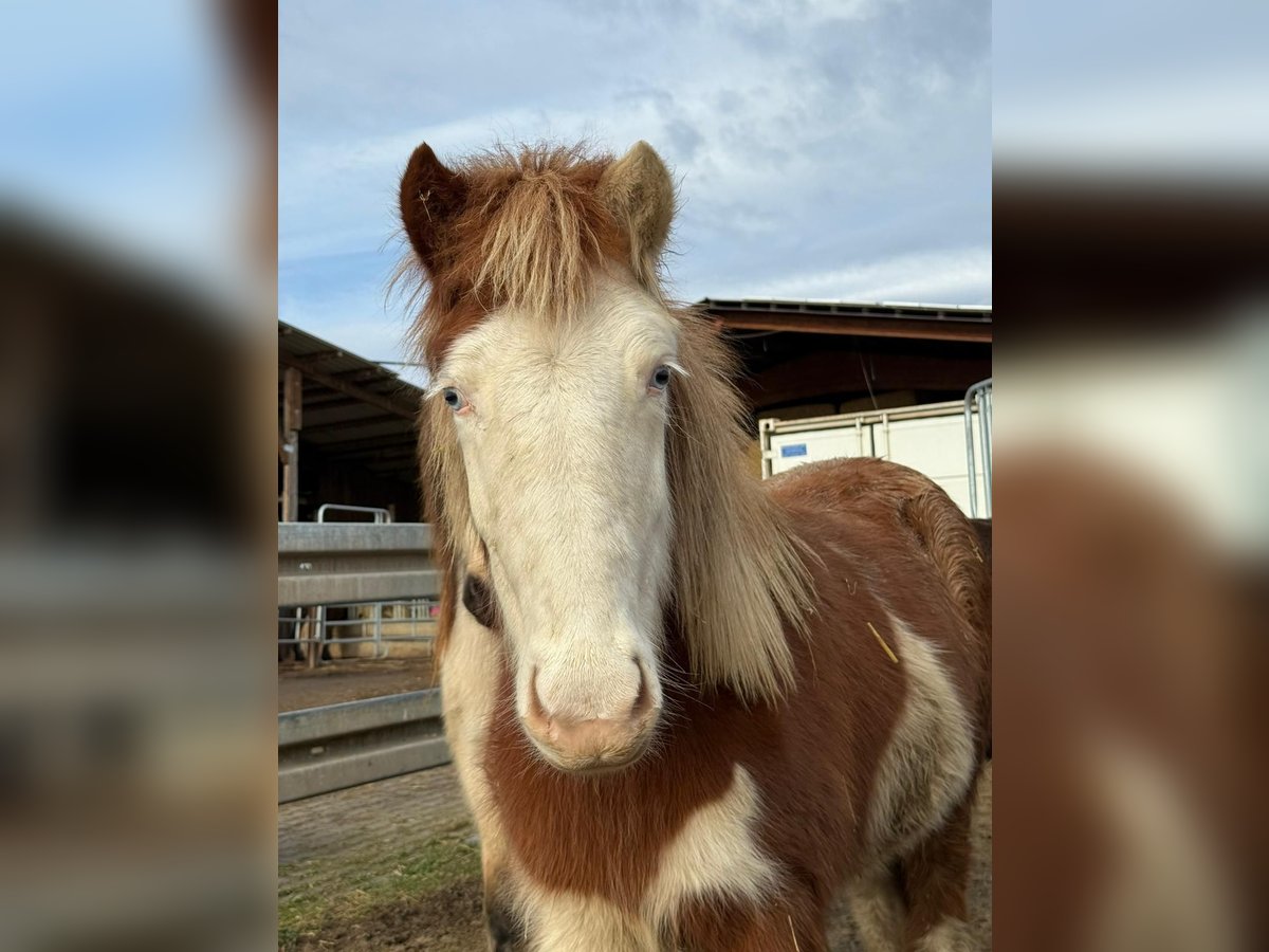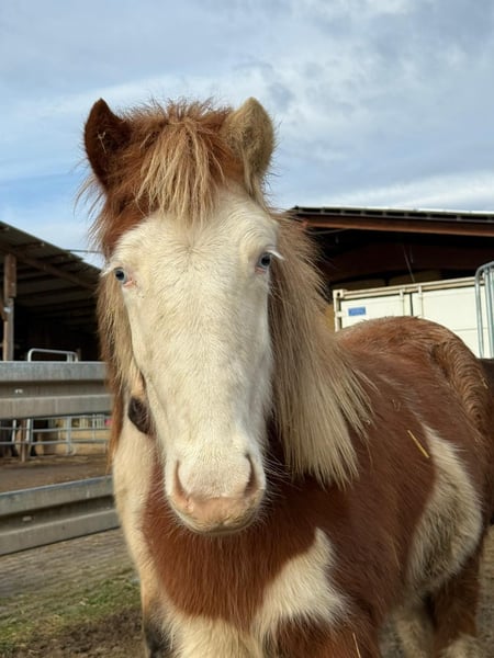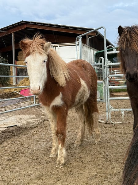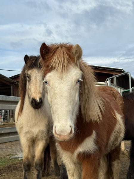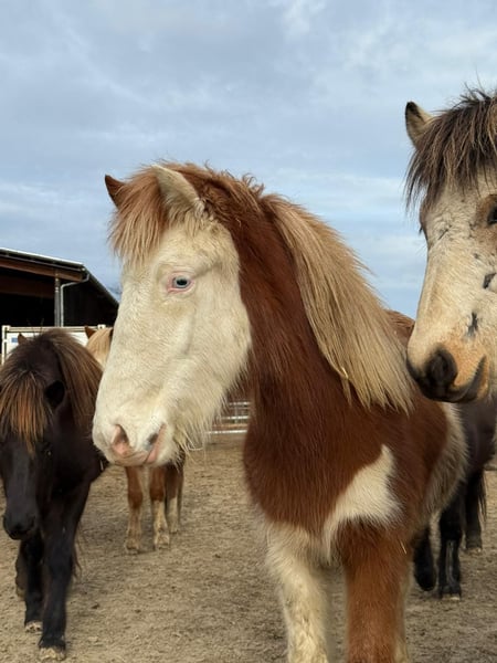 Mósaík ist 2024 bei uns in D geboren und eine auffallend gezeichnete Helmschecke mit einem weißen Ohr. Sie hat eine sehr gute Abstammung, ihr Vater ist Jaguar fra Teland (1,51m) und die Mutter (1,38m) von Kvistur frá Skagaströnd. Altersgemäß ist sie noch roh, aber regelmäßig entwurmt, geimpft, dem Hufschmied vorgestellt und natürlich mit Mineral versorgt. Sie ist freundlich, kuschelt gerne und bleibt auch liegen wenn man sich dazu setzt zum knuddeln. Artgerecht wächst sie im Herdenverband auf und ist immer unter den ersten, die zu einem kommen. Mosaik zeigt Trab und viel Tölt und ist sicher nicht nur als späteres Reitpferd, sondern auch für die Zucht interessant. Die Fotos sind aktuelle Schnappschüsse in der Herde und eins vom Vater. Videos gibt es derzeit keine.