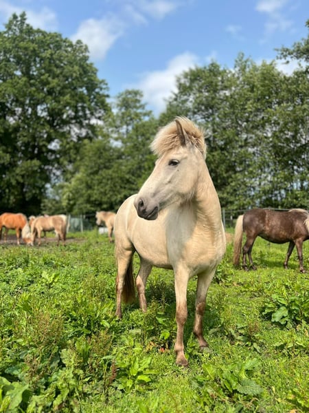 Stjarna von Seimur, fille de Svana von Seimur & du célèbre Kjarkur von Seimur. Stjarna est une jeune jument très gentille et réservée, avec de très belles allures bien séparées, probablement 5 allures. Sa robe s'appelle Braunisabell (couleur terre). Son caractère et son chat sont irréprochables, elle vit avec ses collègues dans nos grands pâturages de 1 à 4 ans avec les jeunes étalons. Stjarna a également de superbes origines et conviendrait pour le loisir, l'élevage et le sport. Plus d'informations sur demande.