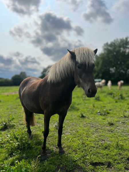 Saeta by Seimur, last daughter of the legendary Vinda vom Adlerhop and the elite stallion Stakkur by Seimur. Her siblings are all just as great as she is! A very fine character and character, for the color wind-colored, rather unusual! Her color is called brown-silver (brown wind colors). She has a 5-color disposition and is expected to reach a final height of approx. 1.44m. Suitable for sport, leisure and breeding. Saeta is a treasure, whoever wants her must be very special, because she is looking for her human. She also stands in the young mare pasture 1 - 4 years old and next to the young stallions. More details via PN or in person.