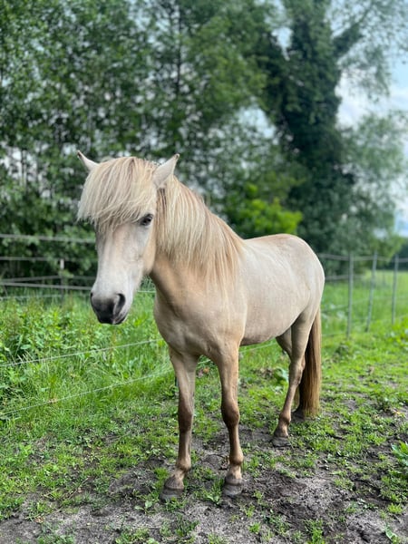 Kilja von Seimur, daughter of Naela vom Störtal and the well-known Kjarkur von Seimur. Special coat color, brown-silver-isabelle (earth wind colors). Very nice clearly separated gaits, expected to be 5-gaited. Super great character, very calm in nature and impeccable in character. Suitable for breeding, sport, and leisure, could be presented at the young horse inspection at the age of 3. She is expected to reach a final height of around 1.44m. She lives on our large pastures with 1 to 4-year-olds, alongside the young stallions. Interested? Then feel free to visit us or send a private message.