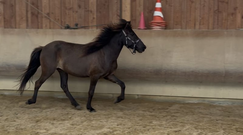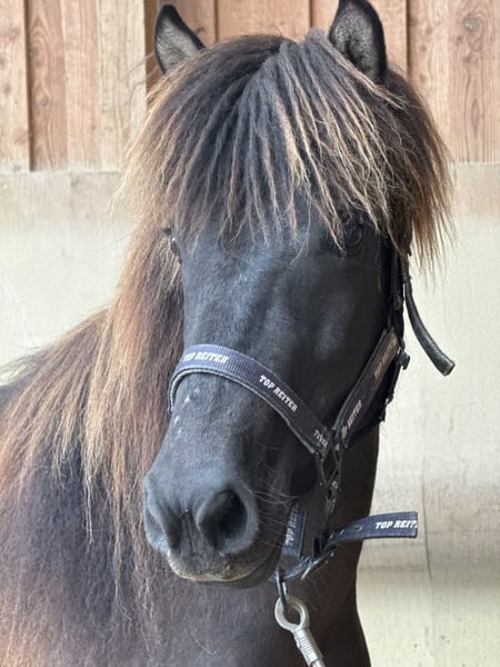 FEIF-ID DE2021273331 Geschlecht Stute Farbe Rappe Abstammung V: Kappi fra Holtsmula M: Elfa fra Torfastödum Beschreibung Karma von Möllenbronn ist eine 4 jährige deutlich fünfgängig veranlagte eher kleine Stute. Ihre Mutter ist eine Vidalin frá Hamraholi Tochter. Ihr Vater ist ein 145cm großer sehr talentierter, viergängig veranlagter Aron Sohn. Karma selbst zeigt freilaufend viel taktklaren Tölt bei gutem Fluss und schönem Raumgriff. Karma wird aktuell schonend angeritten und kennt bereits den Sattel, Trense und den Reiter. Sie wird zurzeit schon frei in der Halle im Tölt, Schritt und Galopp geritten. Karma benötigt Heulage, Heu verträgt sie nicht. Daher wird sie auch günstig abgegeben.