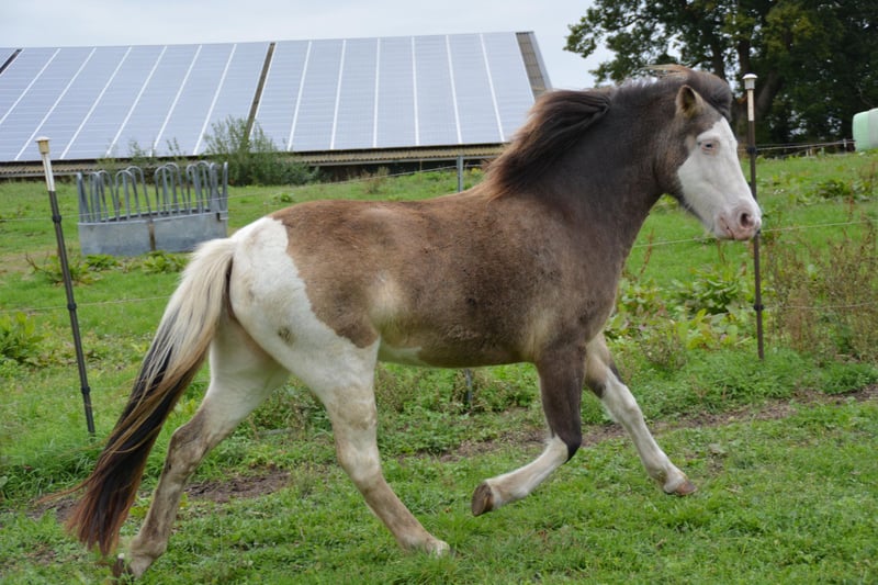 Eydes vom Terlindenhof, jument de 5 ans, elle est actuellement en cours de débourrage. Très attachée aux humains, elle est probablement dotée d'une aptitude à être 4 gaits. Eydes est une jeune jument très calme, qui souhaite plaire à son cavalier. Elle sera très facile à monter, sort en extérieur de manière détendue et convient pour les loisirs et l'élevage. Il convient de souligner sa robe particulière, qui est très rare, notamment chez les chevaux à taches de casque. Quiconque souhaite faire la connaissance d'Eydes peut venir la visiter à tout moment ou obtenir plus d'informations par message privé. Attention ! Lors de l'évaluation de la solvabilité, nous proposons également un paiement échelonné avec un acompte.