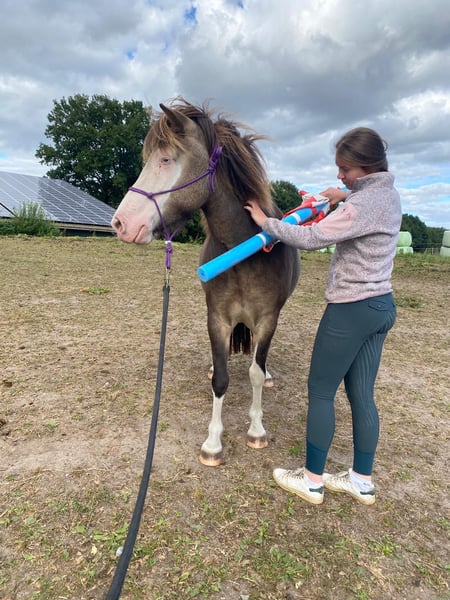 Achtung! Eydes ist im Training und wird eingereitten! Bei weiteren Training, steigt der Preis! Eydes vom Terlindenhof, 5 jährige Jungstute, sie wird gerade eingeritten. Sehr Menschen bezogen, ist voraussichtlich 4 gängig veranlagt. Eydes ist eine sehr ruhgige Jungstute, die ihrem Menschen gefallen möchte. Sie wird sehr einfach einzureiten sein, geht ganz entspannt mit ins Gelände und ist für Freizeit und Zucht geeignat. Besoners ist ihre Sonderlackierung hervorzuheben, die sehr selten gerade bei den Helmschecken ist. Wer Eydes kennen lernen möchte, der kann sie jederzeit bei und besuchen oder näheres per PN.