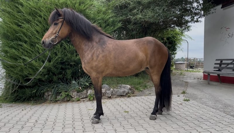 Sprengja ist eine sehr hübsche, fünfgängig veranlagte Stute, die wirklich einfach zu reiten ist und immer Spaß macht. Obwohl sie noch sehr jung ist geht sie routiniert und unerschrocken alleine und mit anderen ins Gelände. Sie hat alle 5 Gänge einfach abrufbar mit guter Gangtrennung. Wir sehen sie als tolles Freizeitpferd und auch Turnierpferd bei entsprechender Förderung.