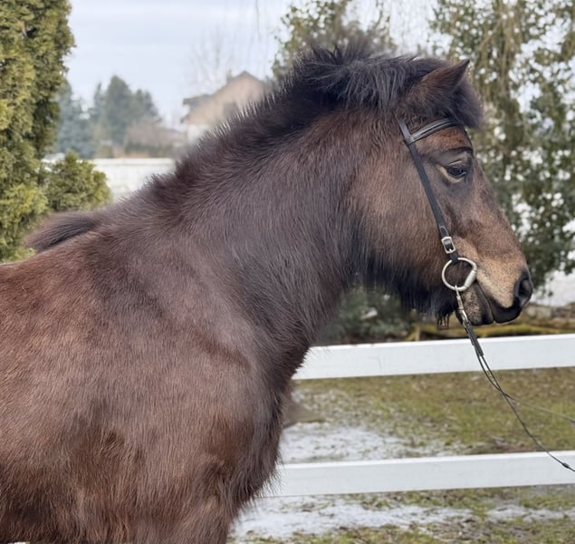 Gleði Stute, 1,41m groß *2020 in Deutschland viergängig geritten bisher Dunkelbraune ohne Abzeichen ekzemfrei, gesund, beschlagen, geimpft, entwurmt V: Myrkvi vom Kronshof 8,31 (Ext 8,27 Re 8,33)‼️ VV: Óðinn vom Habichtswald 8,79 (Ext 8,46 Re 9,02)‼️ M: Gersemi von Hagenbuch MV: Lykill frá Blesastöðum 8,30 (Ext 8,20 Re 8,36)‼️ Gleði ist eine harmonisch gebaute Stute, aus deutscher Zucht, mit einer Abstammung, die sich für Züchter wie ein Märchenbuch liest. In Ihrer Blutlinie finden sich die bekanntesten Hengste und Stuten der Islandpferdezucht. Nicht nur für die weitere Zucht macht sie das interessant. Die hohen Reiteigenschaftsnoten Ihrer Vorfahren lassen auf dem Papier schon erahnen was ein tolles Reitgefühl Gleði dem Reiter gibt. Ihre Gänge sind klar getrennt, von guter bis sehr guter Qualität und zeigen ansprechende Bewegung. Sie ist im Gelände, auf der Bahn und in der Halle gleichermaßen entspannt zu reiten, dass es eine pure Freude bereitet, dieses Pferd arbeiten zu dürfen. Ihr Charakter ist aus Gold, ihre Nerven aus Stahl und das macht sie auch für die Jugend zum perfekten Begleiter auf vier Hufen. Man könnte ein Pferd wie Gleði wohl als die "eierlegende Wollmilchsau" beschreiben, denn mit ihr stehen einfach alle Türen offen. Zucht, Sport, Freizeit, Trainerscheine und Kurse sind mit ihr möglich. Sie zeigt ein Talent für Dressurlektionen und läuft aufgrund ihres vorteilhaften Gebäudes fast von allein in Haltung. Im Umgang ist sie höflich, unkompliziert und dem Menschen sehr zugewandt. Streicheleinheiten beim Putzen findet sie klasse und genießt die Aufmerksamkeit sichtlich. Wer diese tolle Stute kennenlernen und probieren möchte, kann dies gerne bei uns in A-5221 Lochen am See tun.