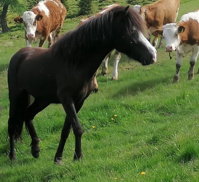 Hella ist eine freundliche, feinfühlige Stute mit zwei blauen Augen und einem angenehmen Wesen. Sie ist stets aufmerksam, lernwillig, benötigt Geduld und ruhiges konsequentes Arbeiten. Mit ihrem mittleren Temperament reagiert sie fein auf Hilfen, benötigt jedoch noch einen erfahrenen Reiter, der ihr Sicherheit gibt. Sie wurde von uns noch sehr wenig geritten, aufgrund von Zeitmangel. Kann bei wirklichem Interesse am Platz oder in der Halle vorgestellt werden. ✔ Brav im Umgang, kennt Sattel, Trense und Reitergewicht ✔ in der Herde aufgewachsen ✔️ Nicht für Anfänger*innen geeignet, da noch wenig gearbeitet ✔️ist regelmäßig geimpft und entwurmt, keine Allergien oder Ekzem