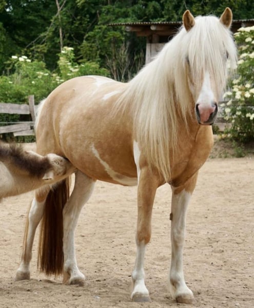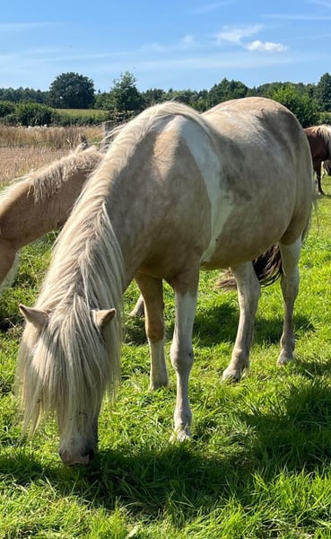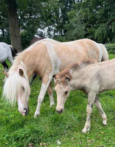 Floka ist ca 1,38m groß und im Stutbuch 1 eingetragen. Sie hat zwei Stutfohlen zur Welt gebracht. Floka ist angeritten, kennt Gelände Kinder,Hufe machen etc. Sie hat mega Behang und eine Traumfarbe mit einem Traumcharakter. Schöne raumgreifende Gänge (4Gängig) Juni 2019 geboren M: Birta fra Starrastodum (Creme) V: Hannes von Litlaborg (Fuchsschecke)