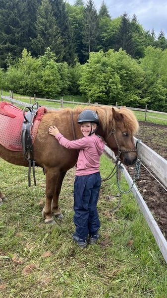 Suraja, 7 Jahre alt, sehr hübsche Fuchsstute mit gekräuselter, heller Fuchsmähne, schöne Rehaugen, ausdrucksstark, sehr wach und interessiert, sehr verspielt und temperamentvoll, gut am Reitplatz und im Gelände zu reiten und zu springen, braucht aber eine feste Hand, daher eher für jugendliche Fortgeschrittene bzw. Erwachsene geeignet, sehr guter Körperbau, 1,43 m Stockmaß, sehr robust. Sie ist noch nie krank gewesen und hat sehr gute Hufe. Da sie sich sehr gut mit ihrem älteren Bruder Sindri, 12 Jahre versteht, würde ich sie bevorzugt gerne mit ihm abgeben. Preis je Pferd dann 5350 €, ansonsten aber auch einzeln an einen sehr guten Platz mit Offenstall und viel Weideflächen. Man kann die Suraja gut gebißlos reiten, sie kennt aber auch Kappzaum. Sie kann durch die Fahrten zur Alm nach Italien auch kann längere Fahrten mit dem Hänger durchstehen.
