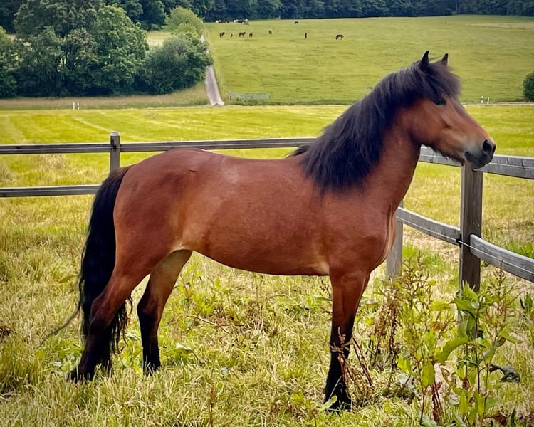 Steinvör ist eine wunderschöne, braune Islandstute mit viel Ausstrahlung. Steinvör überzeugt nicht nur durch ihre Schönheit, sondern auch durch ihren absolut liebenswerten Charakter; sie möchte ihrem Menschen gefallen und bleibt sowohl im Strassenverkehr als auch im Gelände oder in neuen Situationen stets ruhig und verlässlich. Steinvör liebt Kinder und zeigt sich auch in der Pferdeherde sehr sozial. Die Islandpferde Stute hat ein gutes Vorwärts und bleibt dabei stets aufmerksam und motiviert. Sie ist eine Drei-/Viergängerin, langsames Tempo Tölt möglich, mit grossen, raumgreifenden Bewegungen. Steinvör hat eine 2-jährige solide Ausbildung von professionellen Reitern hinter sich. Steinvör ist ekzemfrei, schmiede- und verladefromm. Zu Steinvör passt ein Reiter*in, welcher Freude an einem schönen Pferd mit hervorragendem Charakter und gutem Vorwärts hat. Jemand, der gerne harmonisch mit dem Pferd arbeitet, ob im Gelände oder auf dem Platz. Ich kann mir das Islandpony gut als Wanderreitpferd, Familienpferd, Schulpferd oder heilpädagogisches Schulpferd vorstellen. Name des Pferdes: Steinvör vom Ohetal Geschlecht: Stute Rasse: Islandpferd Jahrgang: 2018 FEIF-ID: DE2018284321 Grösse ca. 143cm Farbe Braun Gangveranlagung: Viergänger Abstammung: Vater: Örn frá Stora-Hofi Mutter: Glás frá Stora-Hofi Preisklasse: Auf Anfrage Anbieter: Caroline Härtel E-Mail 079 447 93 64