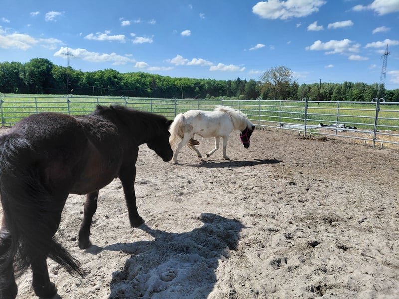 Due to a reduction in our stock, we are selling our home-bred Isis mare. She is familiar with equipment, bridle, and short walks. She can run free with equipment in the arena. She has also carried some rider weight on her back. Very sweet to handle, she gives her hooves and loads easily. She is being sold well below her value. She has Tölt and Pass. Her mother was a racing Pass mare, and her father is a Helmschecke with natural Tölt. 30,- for viewing, which will be deducted from the purchase price.