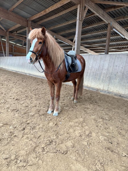 Verkaufe im Auftrag schöne 8-jährige Islandstute mit 4-Gang-Veranlagung. Ca. 10 Wochen unter dem Sattel, aktuell in Grundausbildung. Wird in der Halle und im Gelände geritten. Freilaufend zeigt sie taktklaren Tölt. Im Gelände brav und zuverlässig – kennt Fahrradfahrer, Hunde und Jogger. Freundlich, unerschrocken und mit viel Potenzial zur weiteren Ausbildung. Preis: 8000€ VB (steigt bei weiterer Ausbildung) Bei Interesse gerne melden.